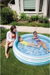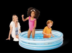 Zilais uzpūšamais bērnu baseins sniegs patīkamu atspirdzinājumu karstās dienās. Stabilā konstrukcija no trim uzpūšamiem gredzeniem nodrošina izturību un mīkstas malas, savukārt pamatne no mīkstināta PVC ir patīkama pieskārienam un mazina slīdēšanu.