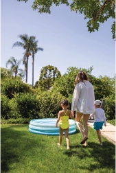 Vienkārši uzpūtiet, piepildiet ar ūdeni un jautrība var sākties. Pateicoties kompaktajiem izmēriem, baseins ir piemērots mazākiem dārziem un to ir viegli glabāt un pārnēsāt.