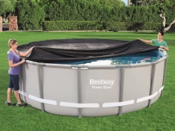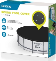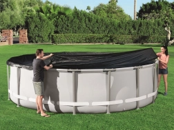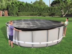 Universālais Bestway pārsegs ir perfekta aizsardzība jūsu karkasa baseinam ar diametru 488 cm vai Hydrium tipam 460 cm. Šis pārsegs pasargā baseinu no kukaiņiem, putniem, lapām un viegla lietus, vienlaikus nodrošinot siltumizolāciju.