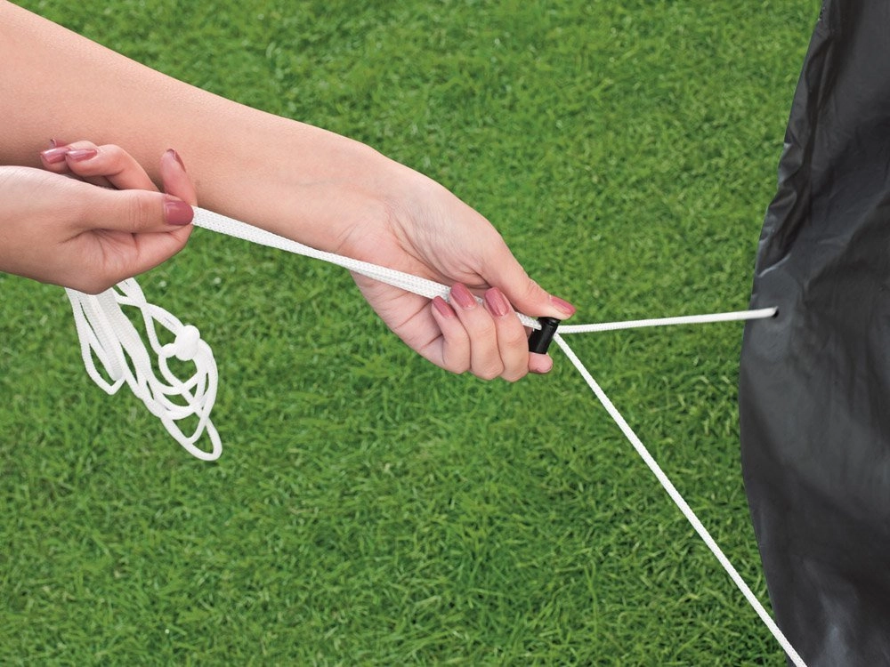 Viegla piestiprināšana ar iekļautajām auklām garantē stingru un drošu baseina pārklājumu.