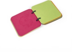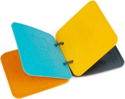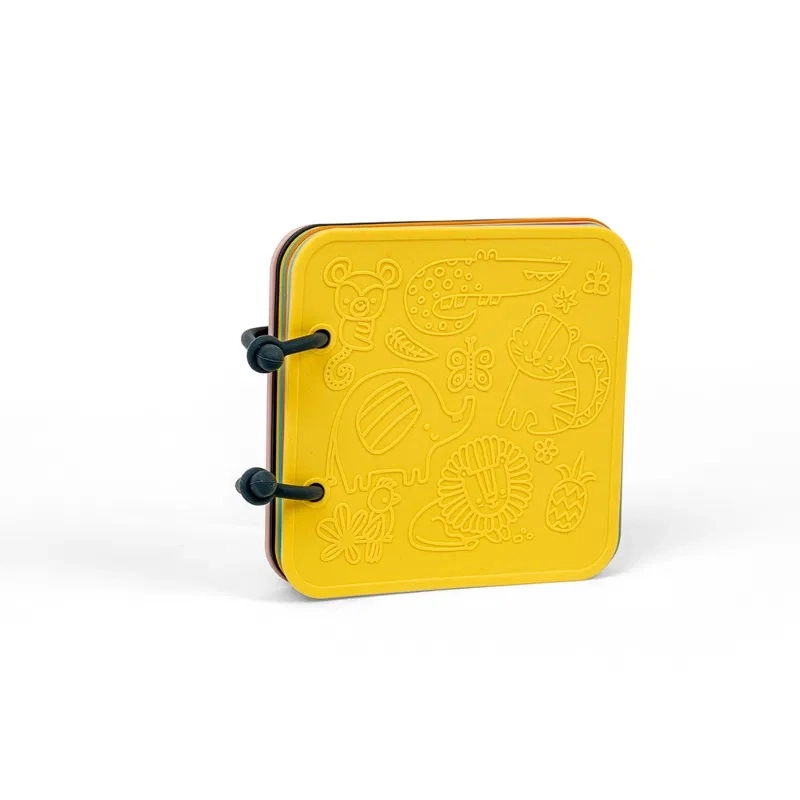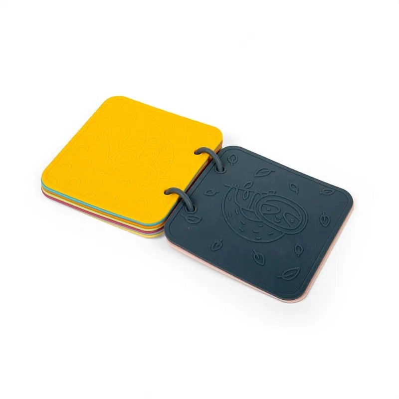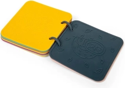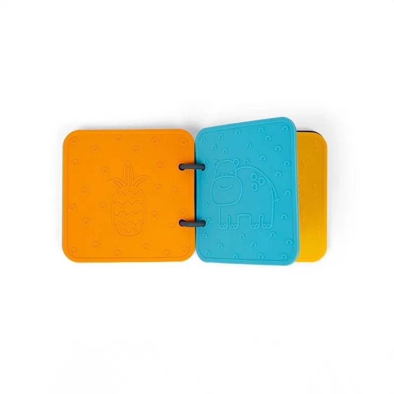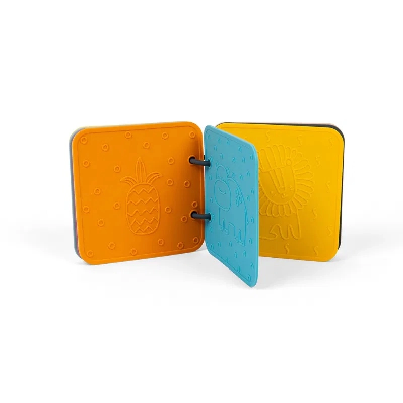 Grāmatiņa ir izgatavota no netoksiska pārtikas silikona, kas ir drošs un saudzīgs pret jutīgu bērna ādu.