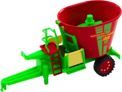 Sarkanzaļš barošanas vagoniņš ar rotējošu maisīšanas cilindru atdarina īstu lauksaimniecības aprīkojumu un paplašina spēļu scenārijus.