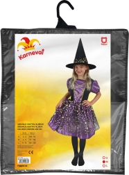 Mirdzoši zelta punktiņi uz izteiksmīgās violeti–melnās kombinācijas piešķir burvīgu izskatu, kas izcelsies jebkurā karnevālā un Helovīnā.