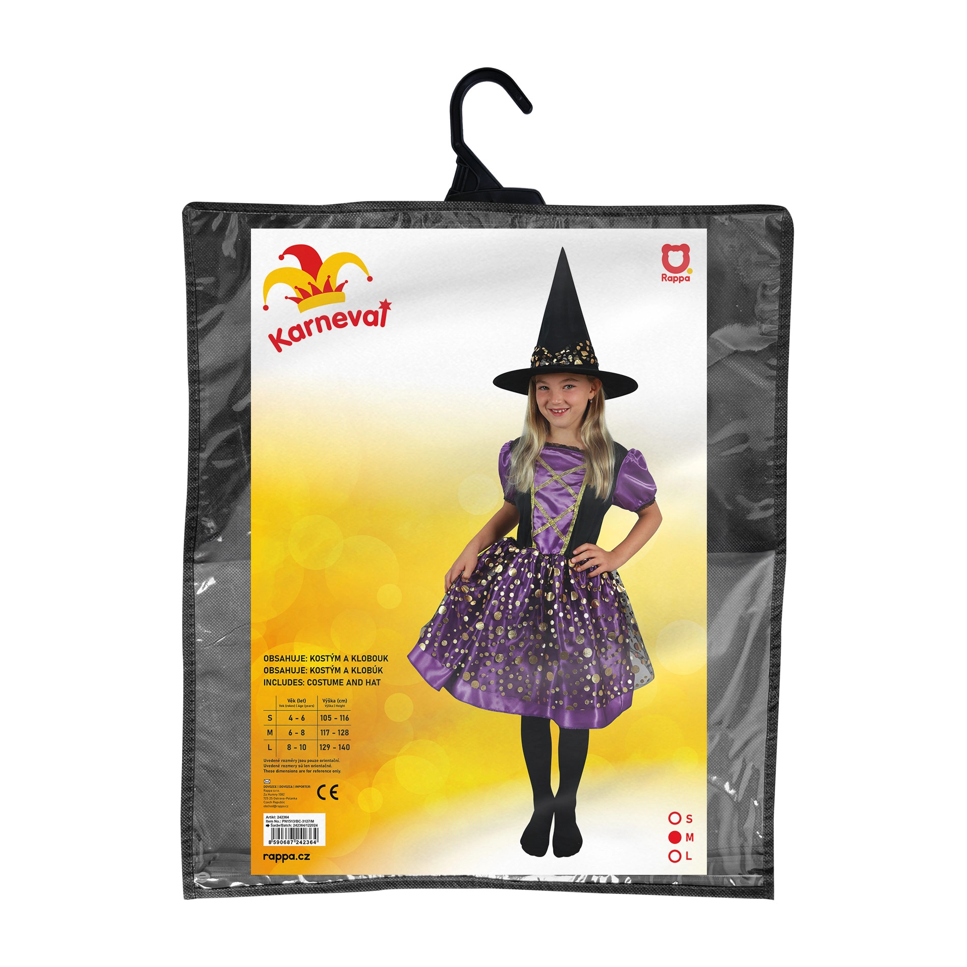 Komplektā ir saskaņota smaila cepure, tāpēc kostīmu atliek tikai uzvilkt un doties ceļā. Ideāli piemērots skolas pasākumiem, masku ballēm, Helovīnam un mājas pārģērbšanās spēlēm.