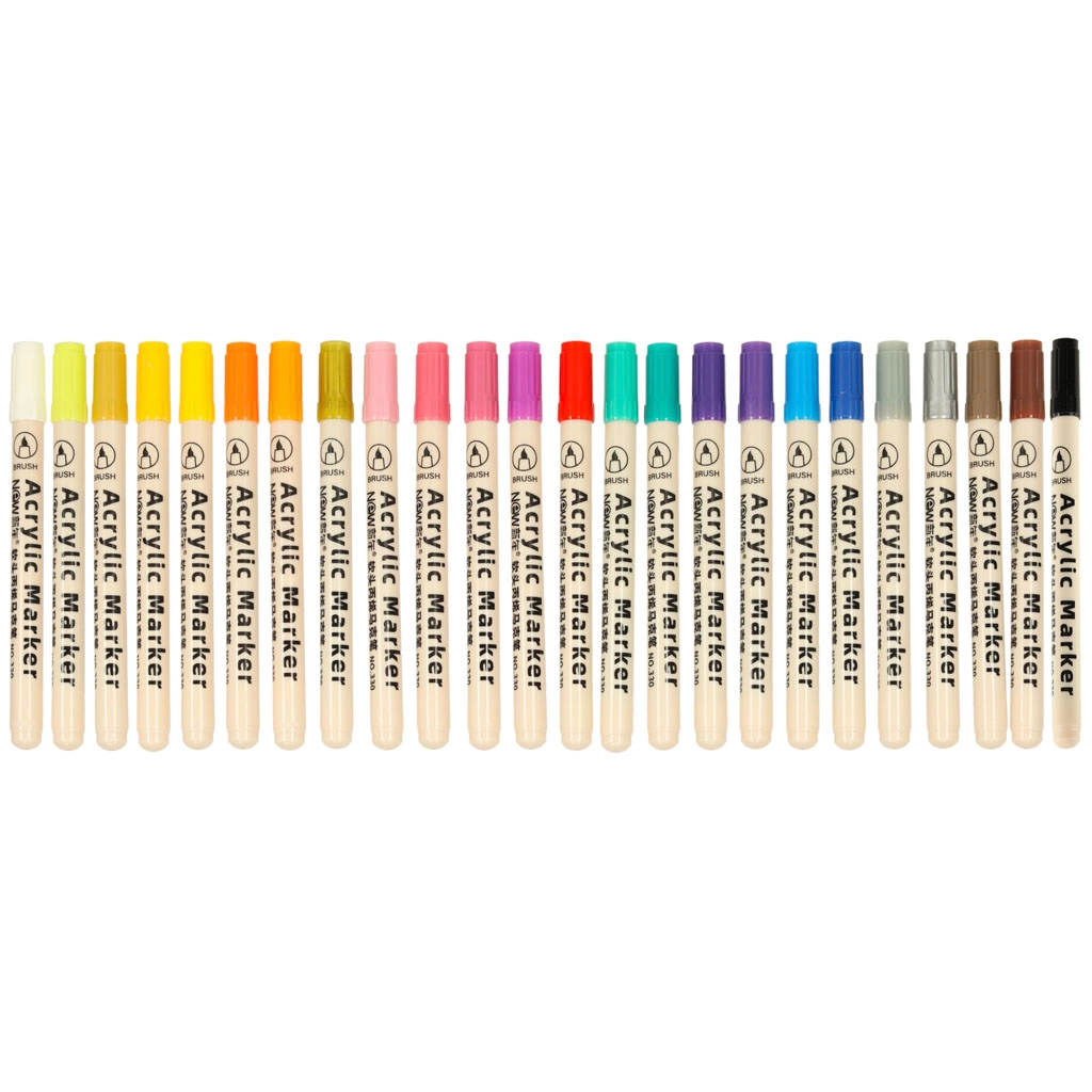 Atklājiet radošuma burvību ar šo 24 akrila marķieru komplektu, ideāli piemērotu zīmēšanai uz dažādām virsmām, piemēram, stikla, keramikas un tekstilizstrādājumiem. Veidojiet unikālus mākslas darbus ar intensīvām krāsām, kas piesaista ikviena uzmanību.