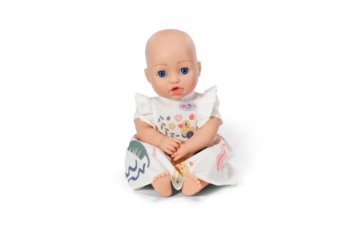 Palutini savu lelli ar stilīgu vasaras tērpu. Baltā kleitiņa ar košiem džungļu motīviem un mīlīgu žirafi ir ar gaisīgu piegriezumu, maigiem volāniem uz piedurknēm un ērti uzvelkama. Lieliski piemērota radošai, daudzveidīgai un ilgstošai spēlei.