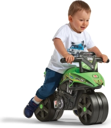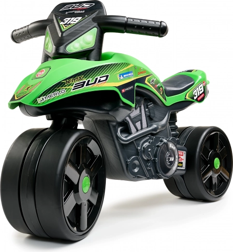 Līdzsvara motocikls ir ražots Francijā zīmola FALK ar augstas kvalitātes plastmasu, kas ir noturīga pret laikapstākļiem, tādēļ bērni var izbaudīt daudz jautrības gan mājās, gan ārā. Pagriežamais priekšējais ritenītis ļauj viegli manevrēt un plūdeni pagriezties, veicinot dabisku stūrēšanas iemaņu apguvi.