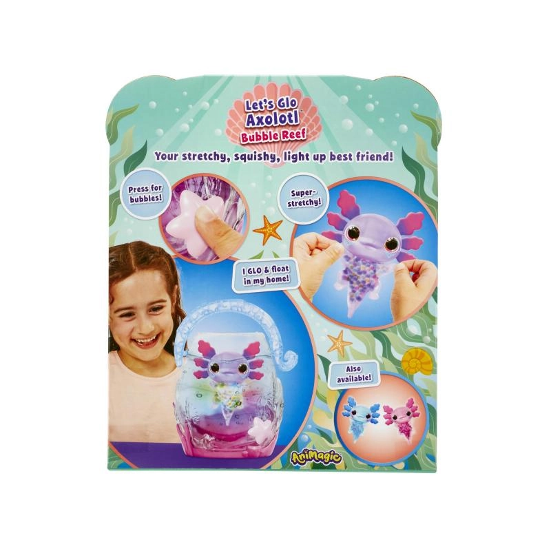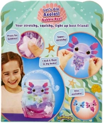 Atklāj zemūdens pasaules burvību ar mīlīgo aksolotlu, kas, nonākot ūdenī, sāk spīdēt! Mīkstā un piekļāvīgā ķermenīša ir patīkami spiest, bet pārnēsājamais “akvārijs” ar rokturi aicina uz radošu burbuļu spēli mājās un ceļā.