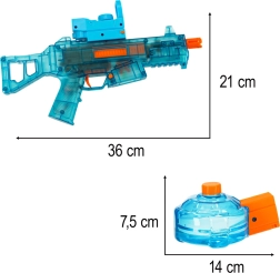Elektriskā ūdens pistole piedāvā klasisku ūdens kauju modernā izpildījumā. Pateicoties automātiskajai sūknēšanai un lielajai tvertnes ietilpībai, vari baudīt nepārtrauktu darbību bez biežas uzpildes. Ergonomiska roktura forma un neliels svars nodrošina ērtu satvērienu arī ilgākas spēles laikā.