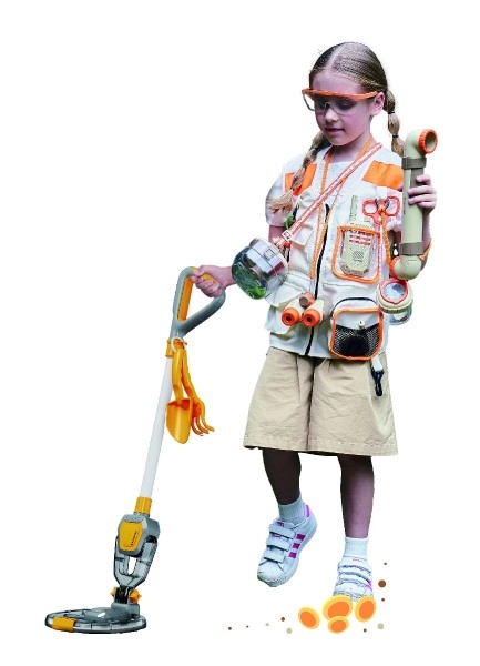 Detektors ir ideāli piemērots spēlēm dārzā, parkā vai pludmalē. Tas veicina zinātkāres attīstību, mācīšanos rotaļājoties un uzturēšanos svaigā gaisā. Ar darbības dziļumu līdz 10 cm tas ir piemērots drošai sīku priekšmetu meklēšanai. Barošanu nodrošina 2× AA baterijas (nav iekļautas iepakojumā).