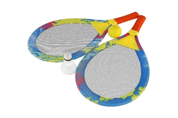 Iepakojumā atradīsiet divas raketes, putu bumbiņu un badmintona volānu, tādēļ varat mainīt spēles pēc vēlēšanās – no vienkāršas pasīšanas līdz “pludmales tenisam” un pamata badmintonam. Drošā izpilde ir piemērota jau no 3 gadu vecuma.