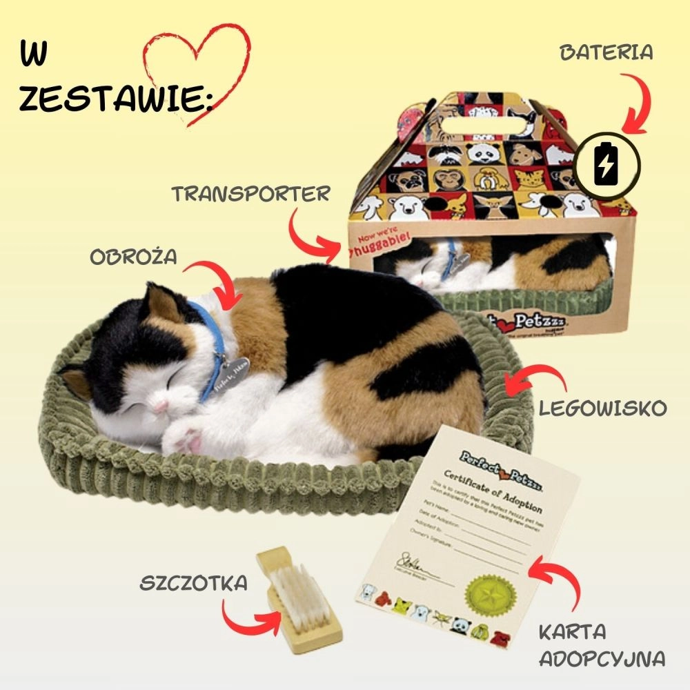 Šis elpojošais trīskrāsu kaķēns uzticami atdarina guļošu kaķi un sniedz siltu mājdzīvnieka klātbūtnes sajūtu – bez raizēm un uzkopšanas. Maigs plīšs, reālistisks krāsojums un viegla kustība miega laikā rada autentisku iespaidu, kas iepriecina gan bērnus, gan pieaugušos.