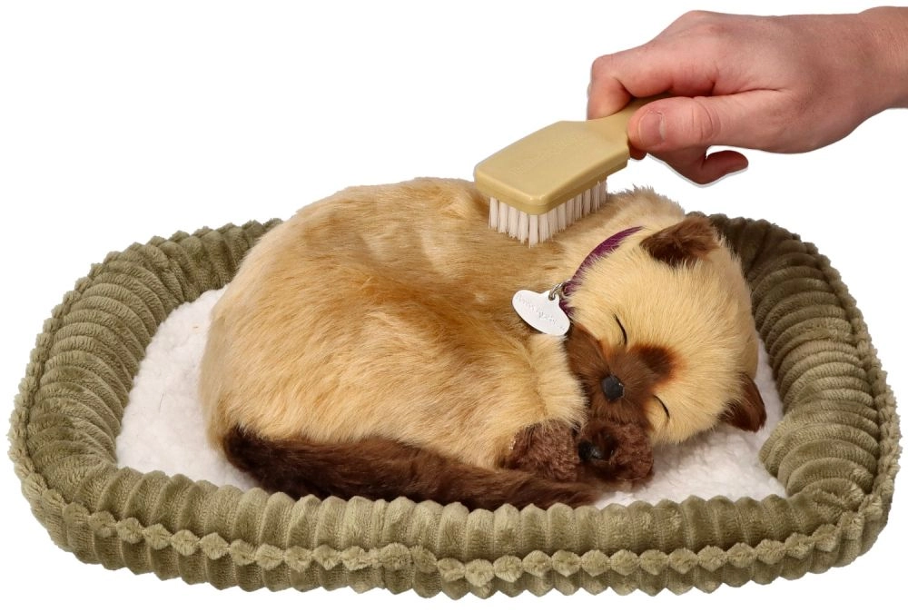 Detalizēti apstrādāts kažoks un guļoša poza rada īsta kaķēna iespaidu. Elpošanas simulācija darbojas klusi un nomierina gan bērnus, gan pieaugušos.