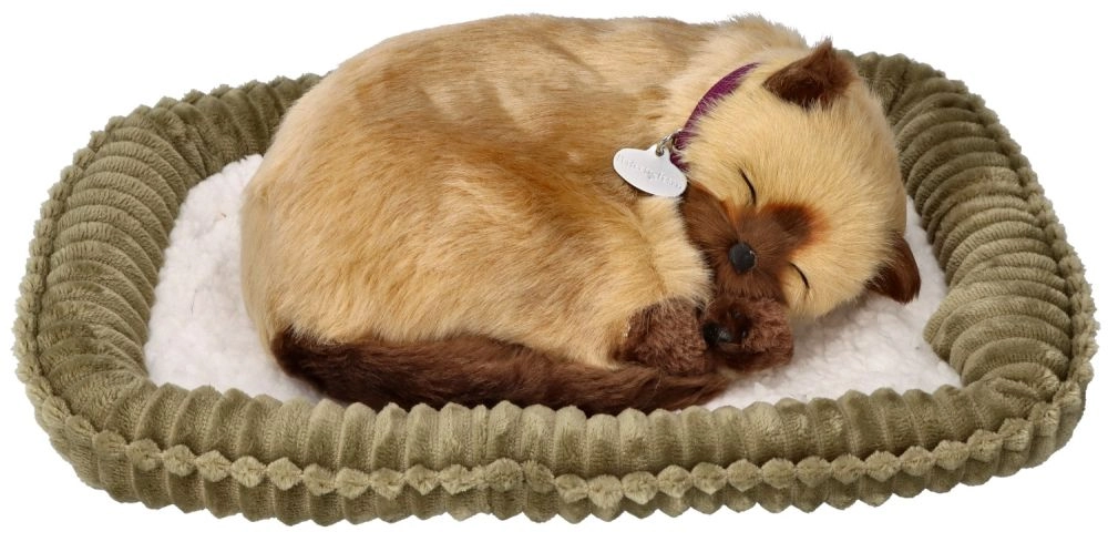 Šī reālistiskā mīkstā kaķene atdarina guļošu siāmas kaķēnu, un pateicoties maigajai “elpošanai” rada neparasti nomierinošu iespaidu. Mīkstā guļvieta lieliski piemērota izvietošanai uz plaukta, naktsgaldiņa vai bērnu stūrītī.