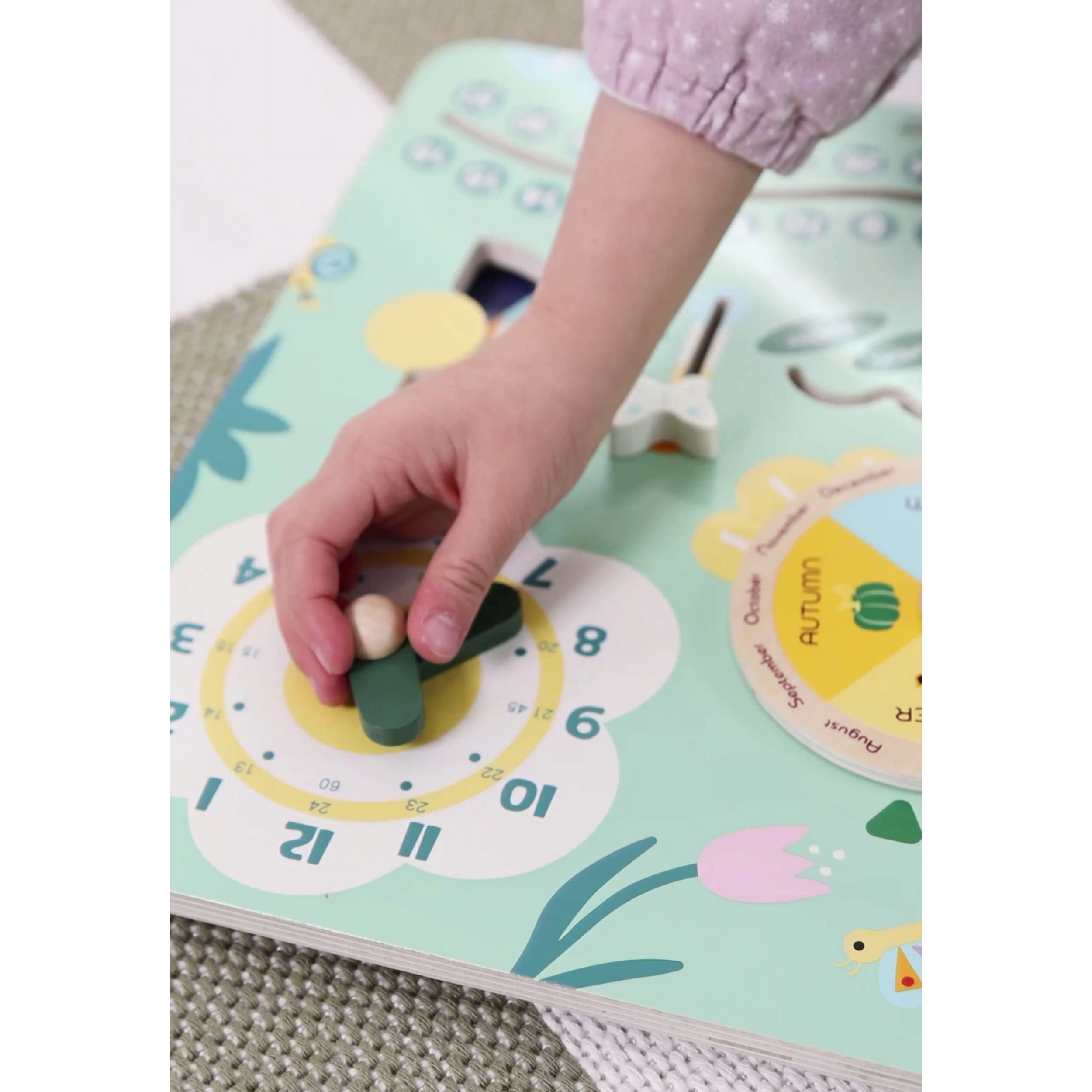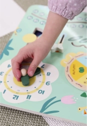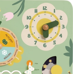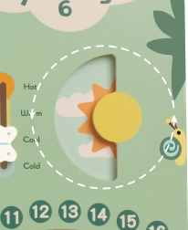 Šis krāsainais un pārskatāmais koka kalendārs palīdz bērniem viegli izprast laika pamatus un iepazīties ar angļu valodas vārdiem. Ideāli piemērots mājmācībai un bērnudārza vajadzībām: