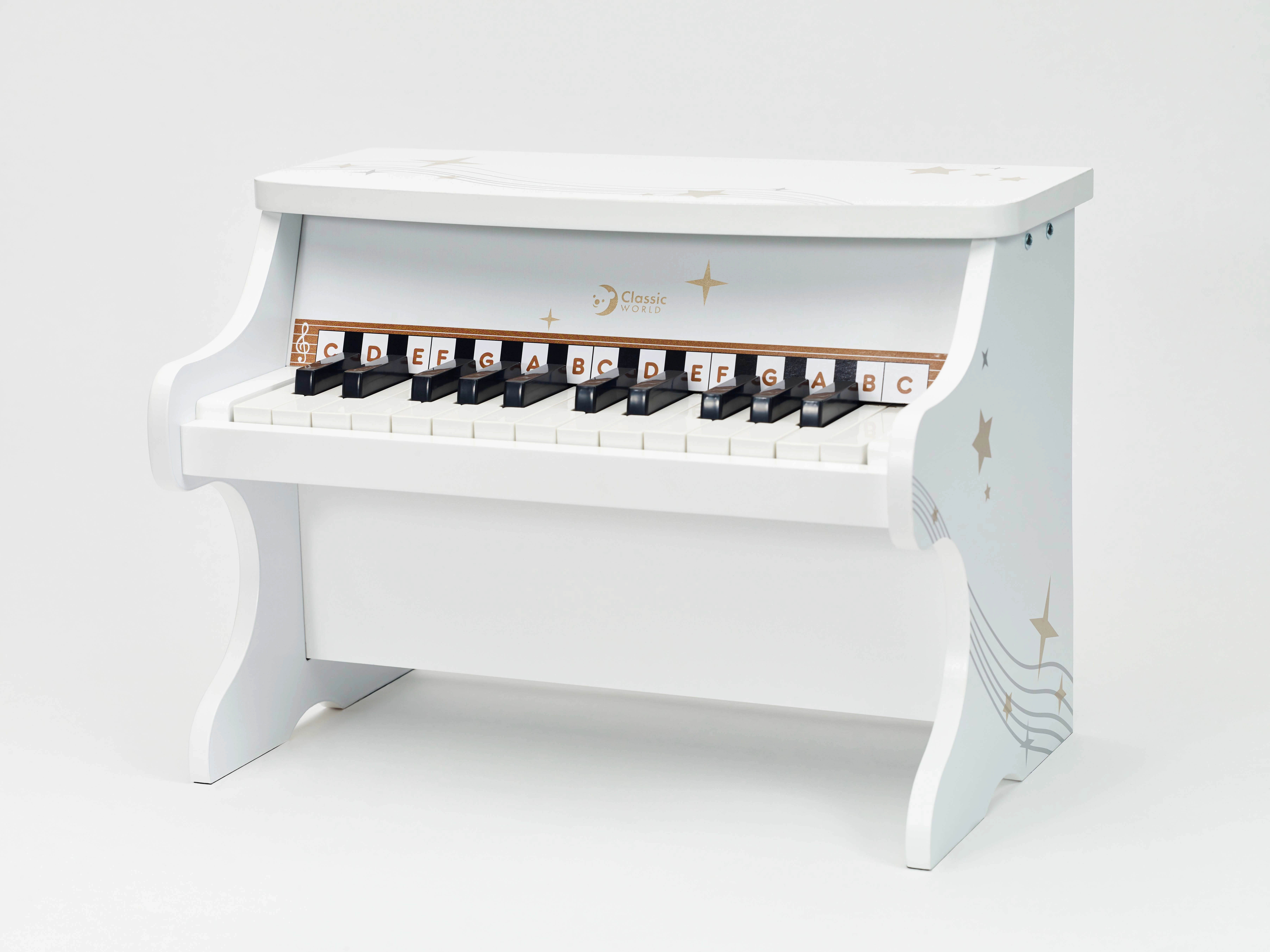 Bērnu klavieres CLASSIC WORLD ir rūpīgi izgatavotas no koka un pārklātas ar netoksisku laku baltā krāsā. Reālistiskais izpildījums un skaidrs tonis sniedz īstu muzikālu pieredzi un iedrošina bērnus atklāt melodiju un ritmu.
