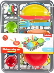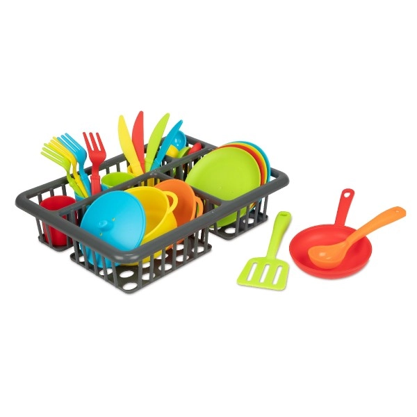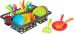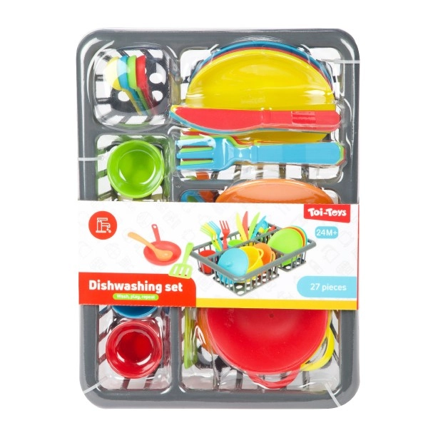 Rotaļīga virtuves komplekts mazajiem pavāriem satur 27 detaļas – katlu, pannu, šķīvjus, krūzītes, galda piederumus un citas palīgierīces. Veicina radošumu, sīko motoriku un sociālās prasmes spēlēs par gatavošanu un pasniegšanu. Praktisks blistera iepakojums uztur visu pārskatāmi kopā. Piemērots bērniem no 2 gadu vecuma.