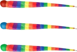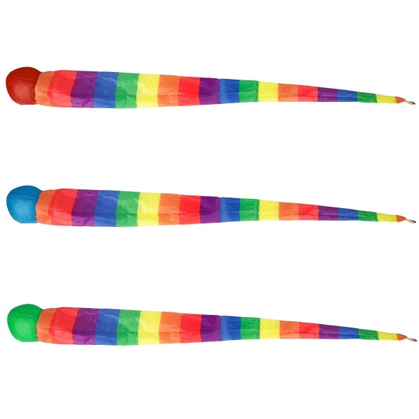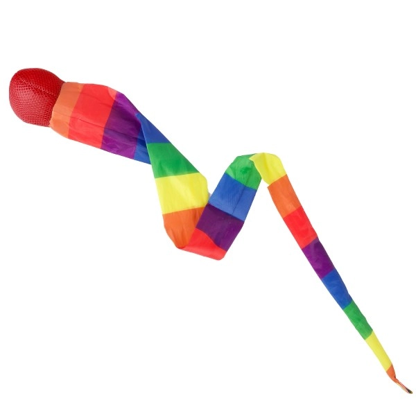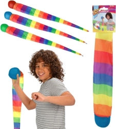 Atklājiet rotaļlietu, kas sniedz kustību prieku! Bumbiņai ar asti ir 100 cm garums, kas nodrošina aizraujošu spēles pieredzi ar katru metienu. Varavīksnes krāsas piesaista bērnu uzmanību un iedrošina uz aktīvu rotaļu, kas ir ideāli piemērota viņu motorisko prasmju un roku-acu koordinācijas attīstībai. Izbaudiet stundām ilgu izklaidi dārzā, parkā vai mājās.
