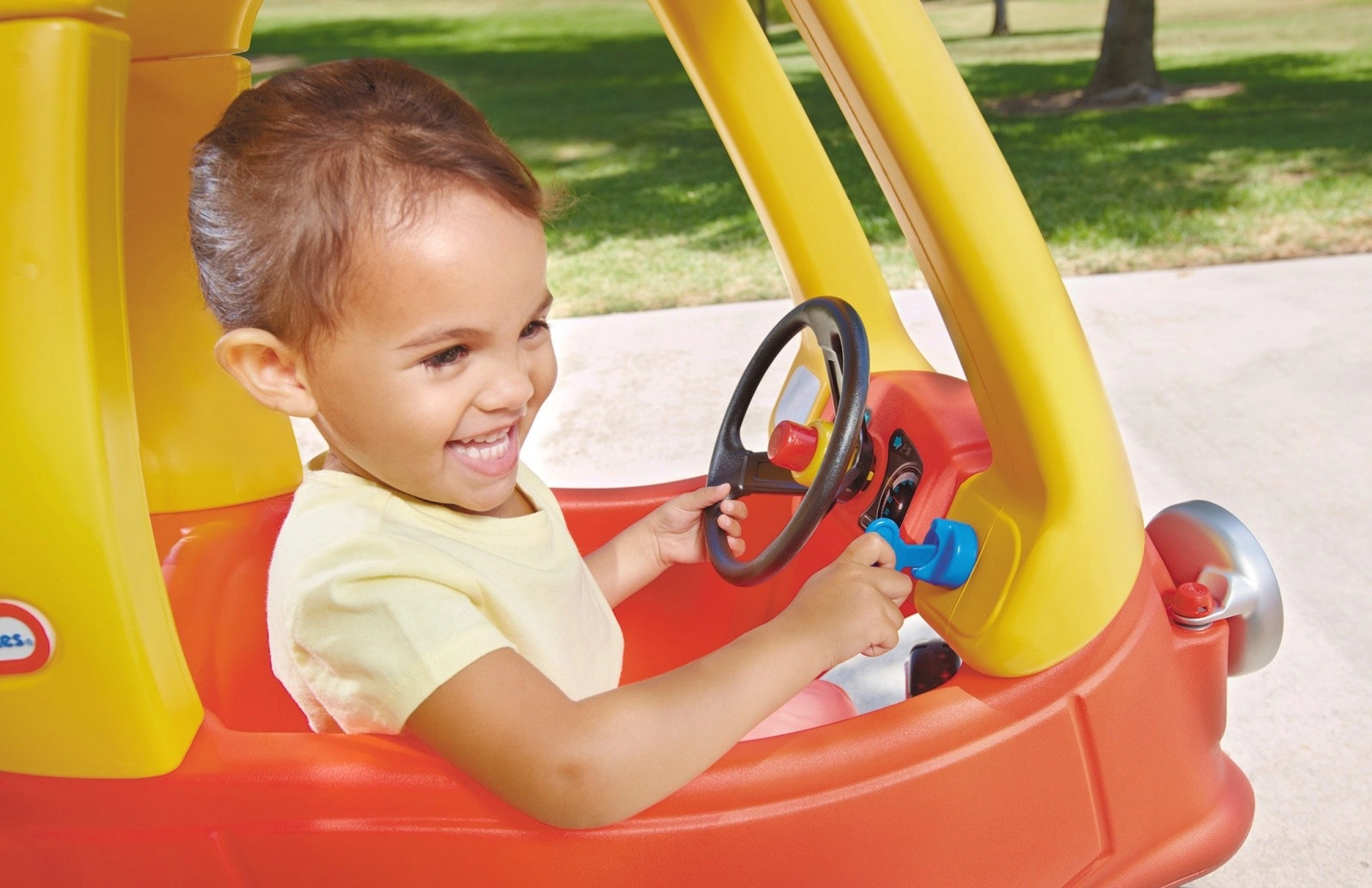 Ikoniskais braucamrīks Little Tikes Cozy Coupe versijā jaunās acis iepriecinās gan bērnus, gan vecākus. Bērni var braukt, stumjot ar savām kājām, vai arī ļauties vadīt ar vecāku rokturi. Neiztrūkst stūre ar skaņas signālu, aizdedzes atslēga, izņemama grīda, atverams degvielas tvertnes vāciņš un priekšējie riteņi ar 360° rotāciju lieliskai vadāmībai gan mājās, gan ārā.