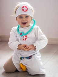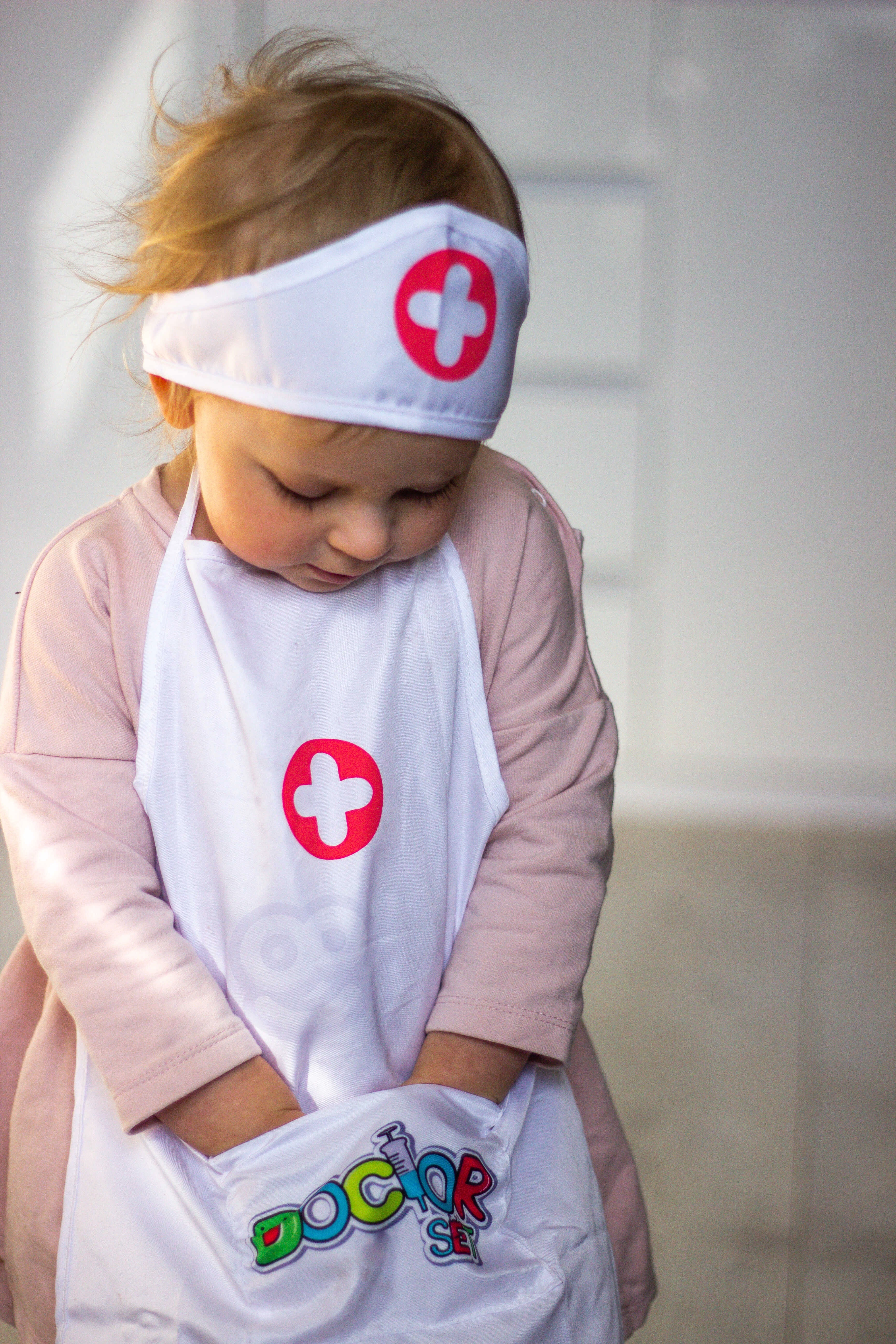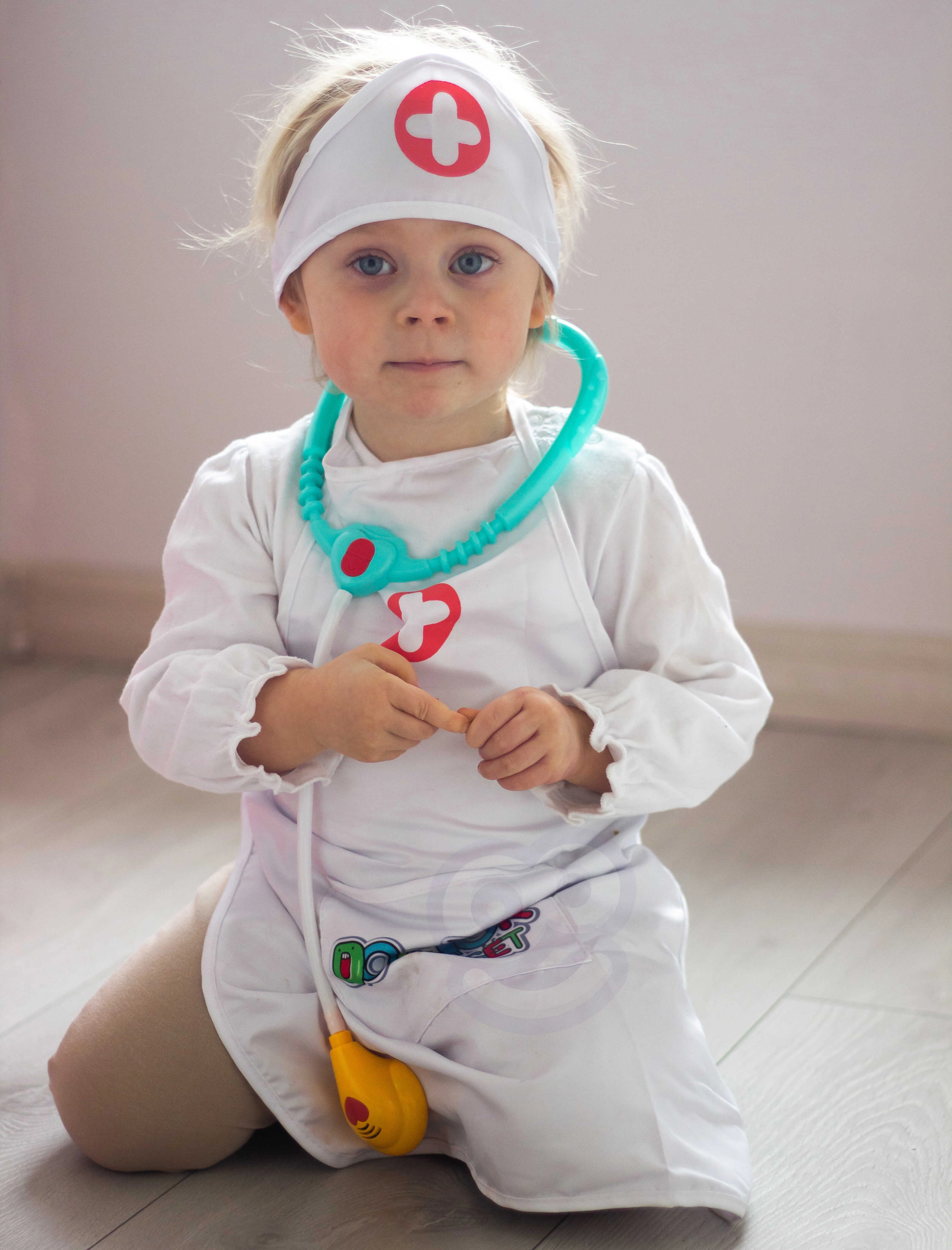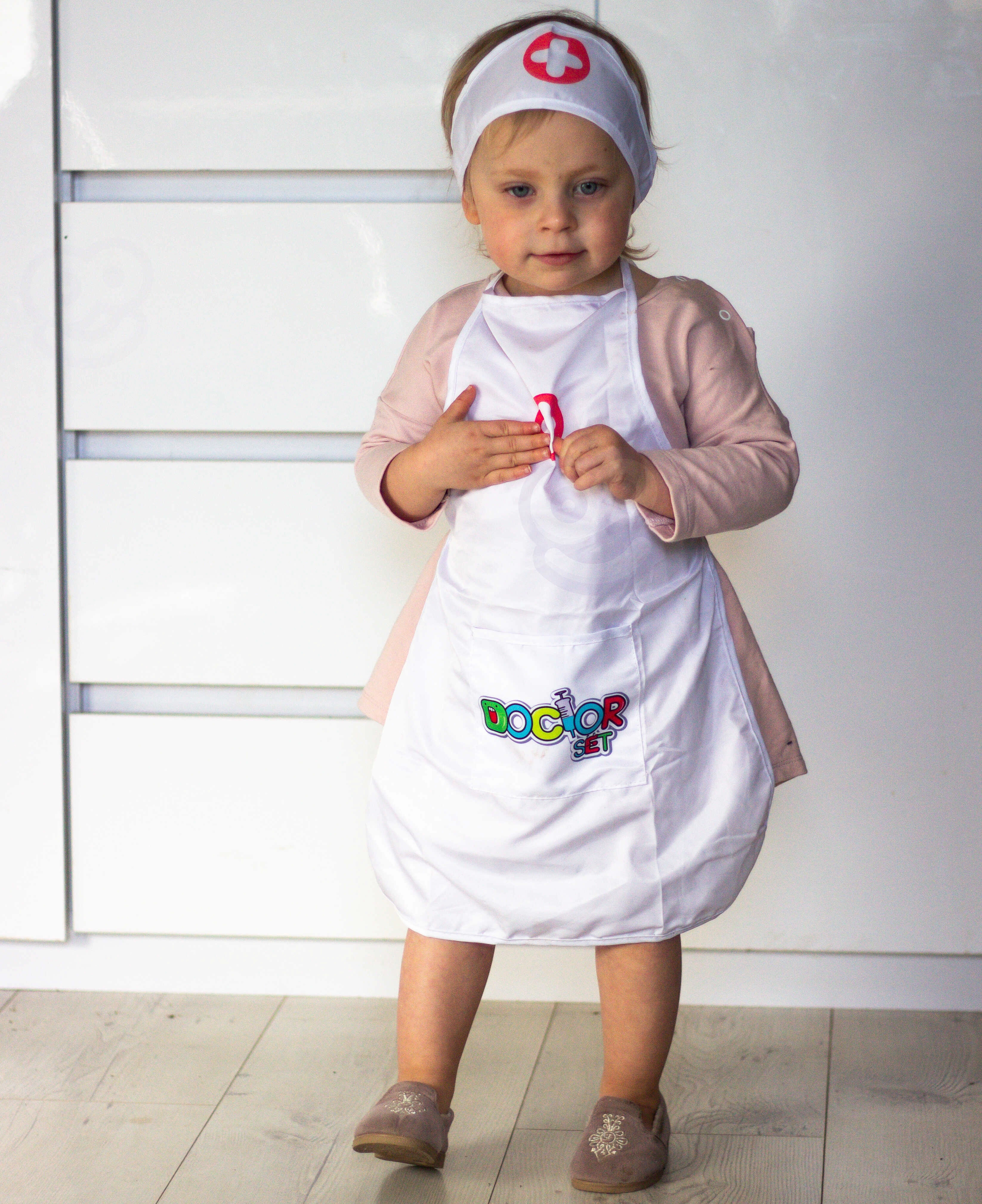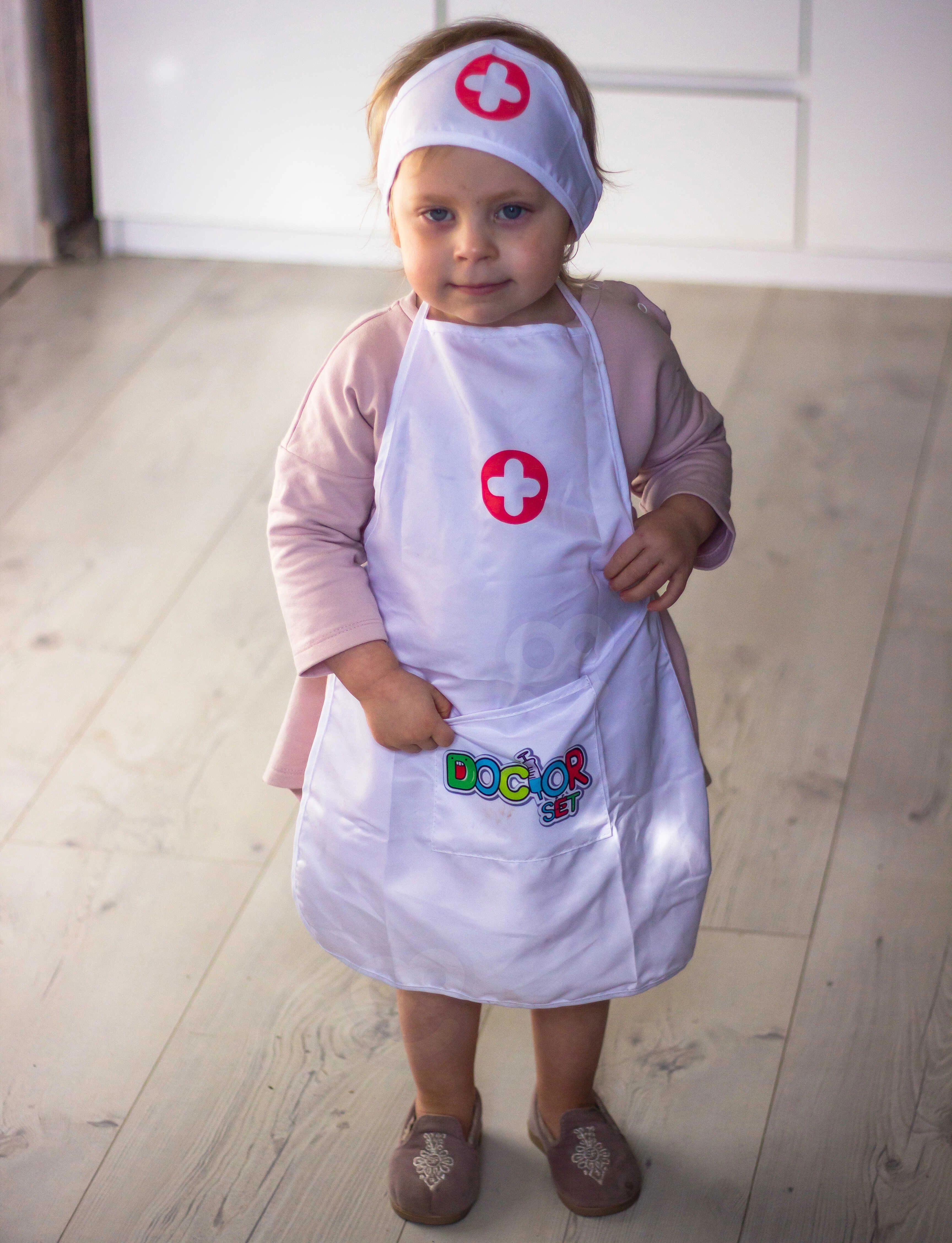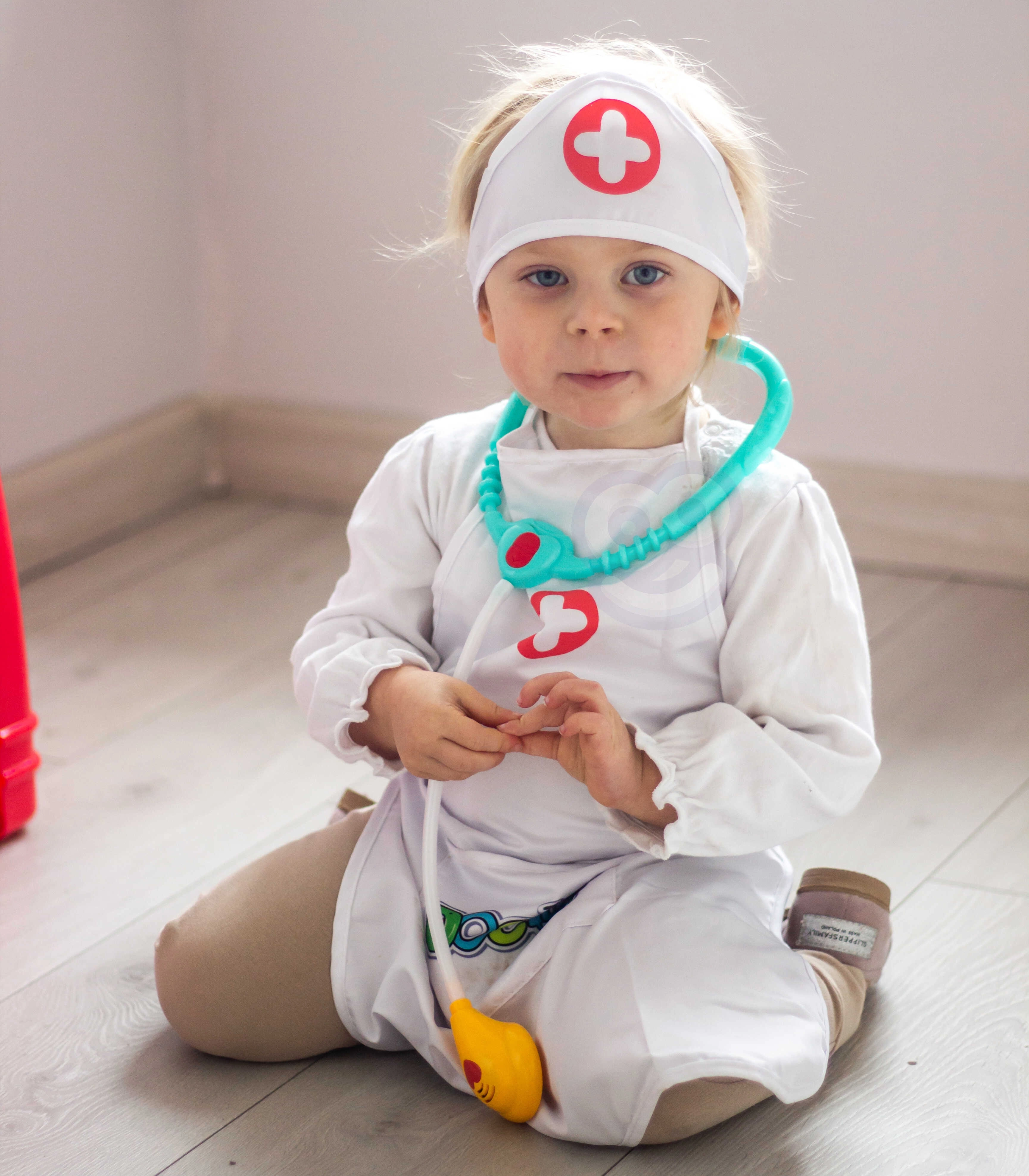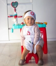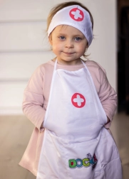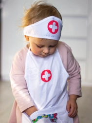 Viegls priekšauts ar praktiskām kabatām ietilpina stetoskopu un citus bērnu piederumus, lai “ārstu spēle” vienmēr būtu pa rokai.