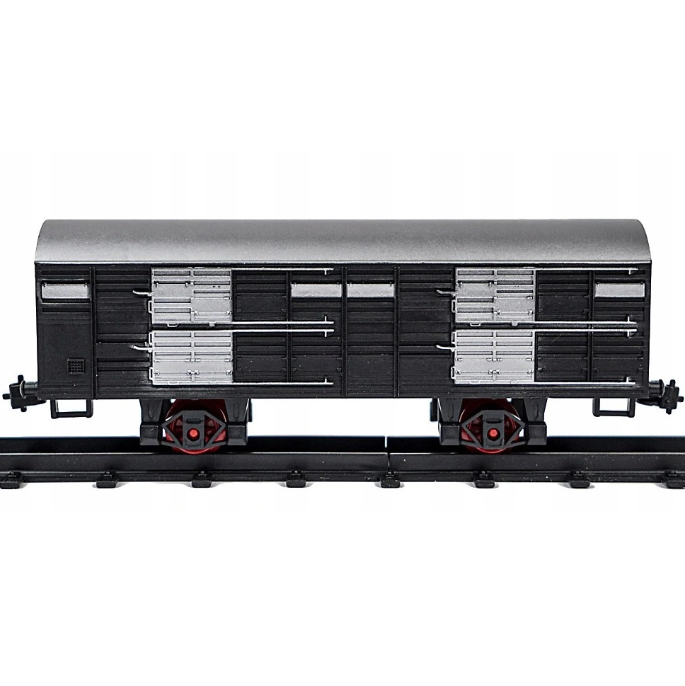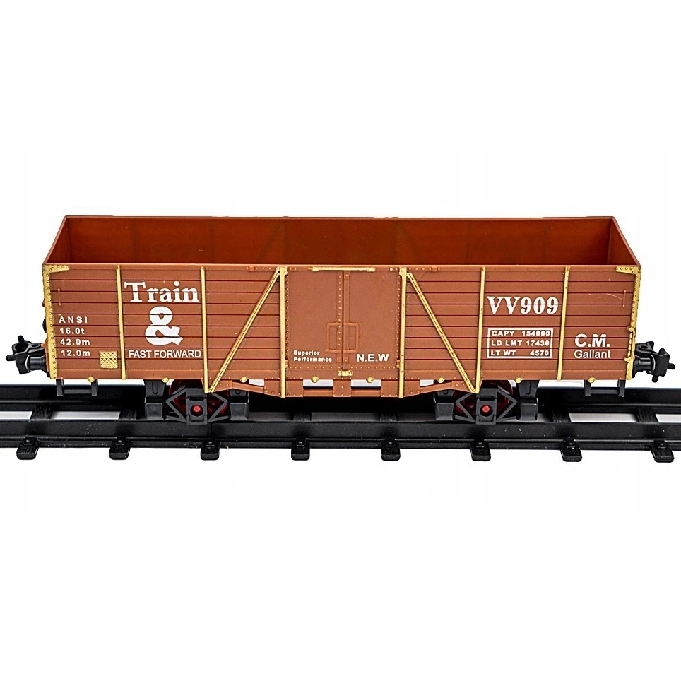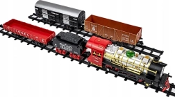 Iepakojumā atradīsiet lokomotīvi, ogļu vagonu un vagonus. Bērni var izveidot savus dzelzceļa piedzīvojumus un attīstīt fantāziju un sīko motoriku.