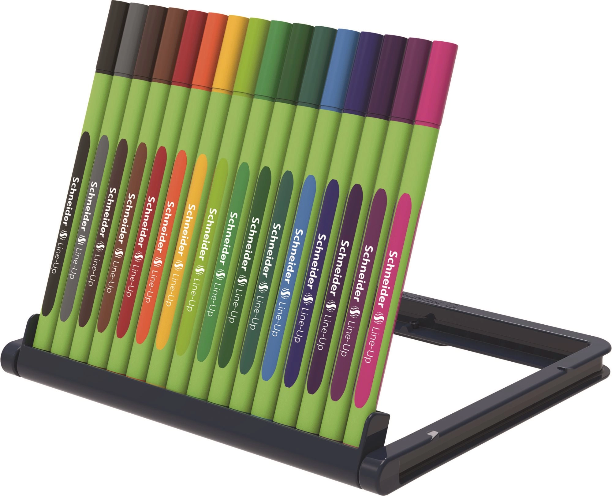 Atklājiet kvalitatīvu SCHNEIDER Line-Up marķieru komplektu ar 16 intensīvām krāsām precīzai rakstīšanai un zīmēšanai. Laineris ar šķiedru galu metāla apvalkā nodrošina smalku 0,4 mm līniju, ērtu gumijotu trijstūrveida korpusu no videi draudzīga bioplastmasas un vāciņu un galiņu tvertnes krāsā ērtai orientācijai.