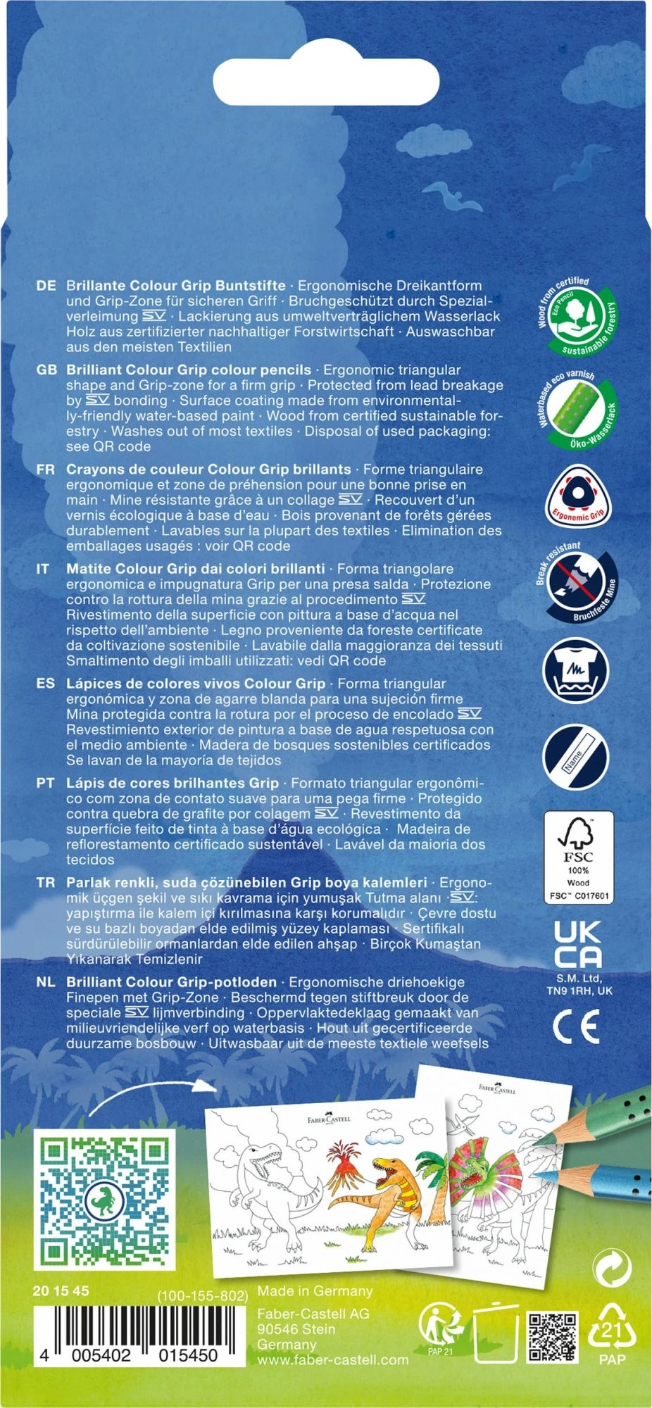 Šis tematiskās sērijas komplekts ar dinozauru motīvu apvieno 10 augstvērtīgus Colour Grip zīmuļus un 3 efektīvos Sparkle zīmuļus radošai zīmēšanai, krāsošanai un skolas projektiem. Ergonomiskā trijstūrveida forma veicina pareizu satvērienu, bet patentētā satvēriena zona nodrošina drošu un pārliecinošu turēšanu arī ilgstošas lietošanas laikā.