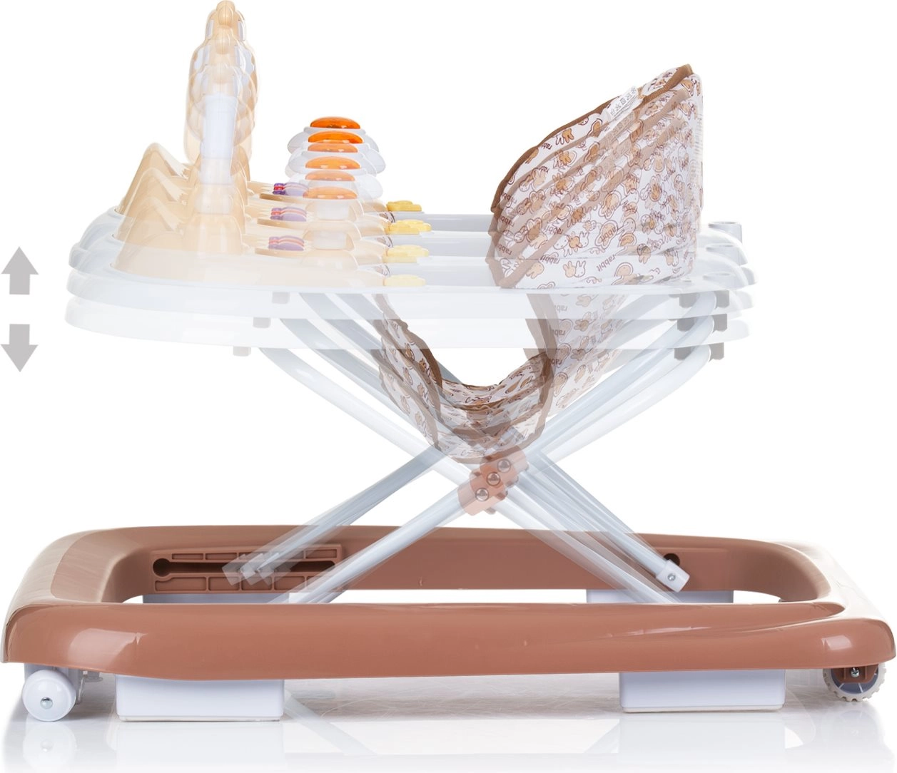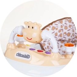 Interaktīvais staiguļiņš CHIPOLINO Little Cow Mocca ir ideāls bērniem līdz 12 kg, kuri jau patstāvīgi sēž. Tas piedāvā platu pamatni stabilitātei, 3 sēdekļa augstuma pozīcijas, priekšējos riteņus ar 360° pagriezienu un interaktīvu paneli redzes un dzirdes attīstībai. Pateicoties 6 drošības aizturētājiem, tiek pasargāts no apgāšanās un krišanas pa kāpnēm.