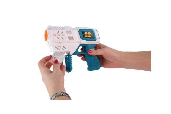 Vienkārši pievienojiet uzpildi pistolei un ar mēlītes spiedienu radiet krāsainus burbuļus.
