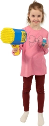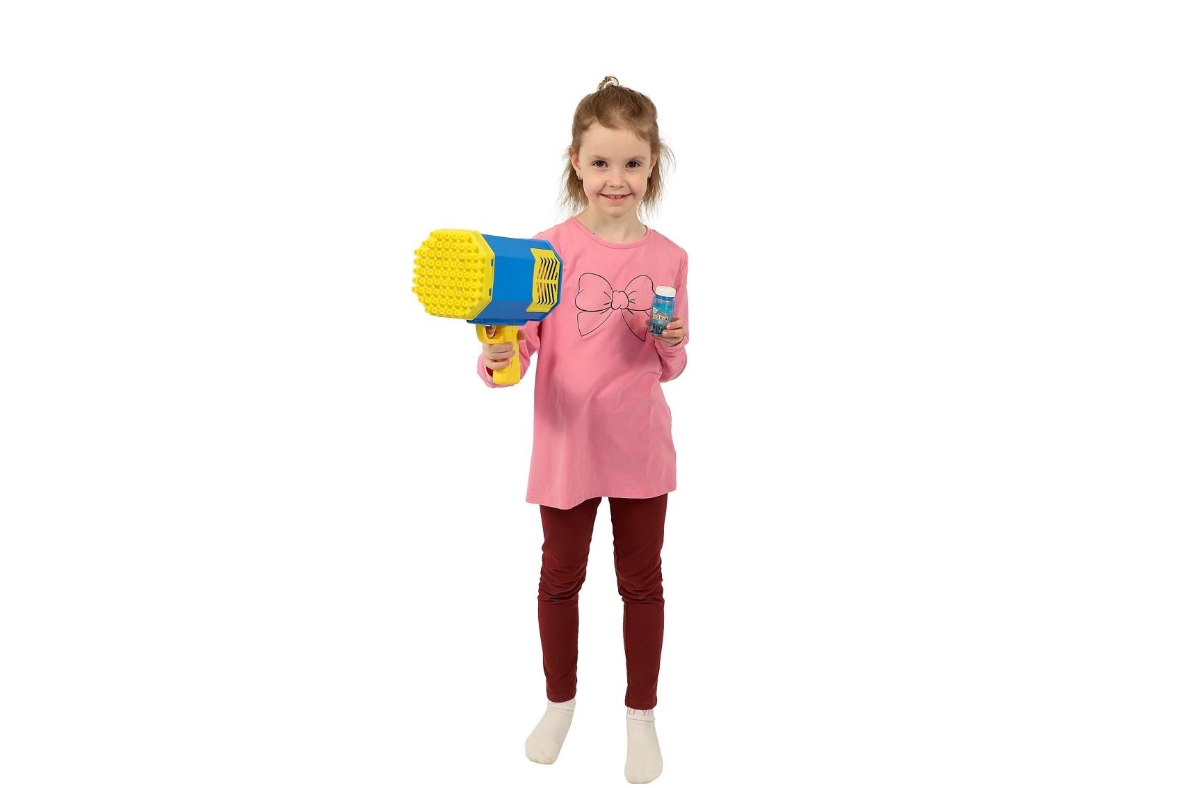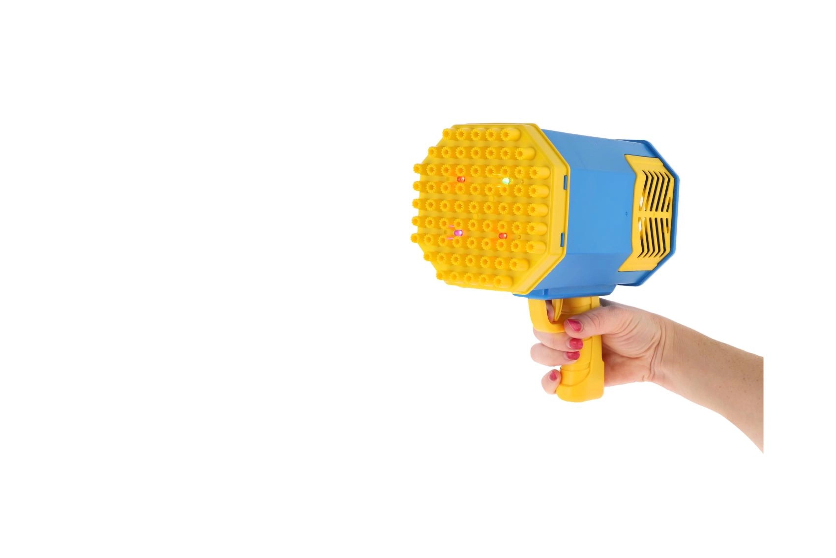 Šī bērnu burbuļu pistole pārvērtīs katru pēcpusdienu krāsainā šovā. Kompakts 22 cm izmērs, ergonomiska roktura forma un viegla plastmasas konstrukcija nodrošina ērti turēšanu arī mazākajiem bērniem. Vairāku sprauslu galviņa rada mirdzošu burbuļu lavīnu, kas iepriecinās gan mazos, gan lielos.