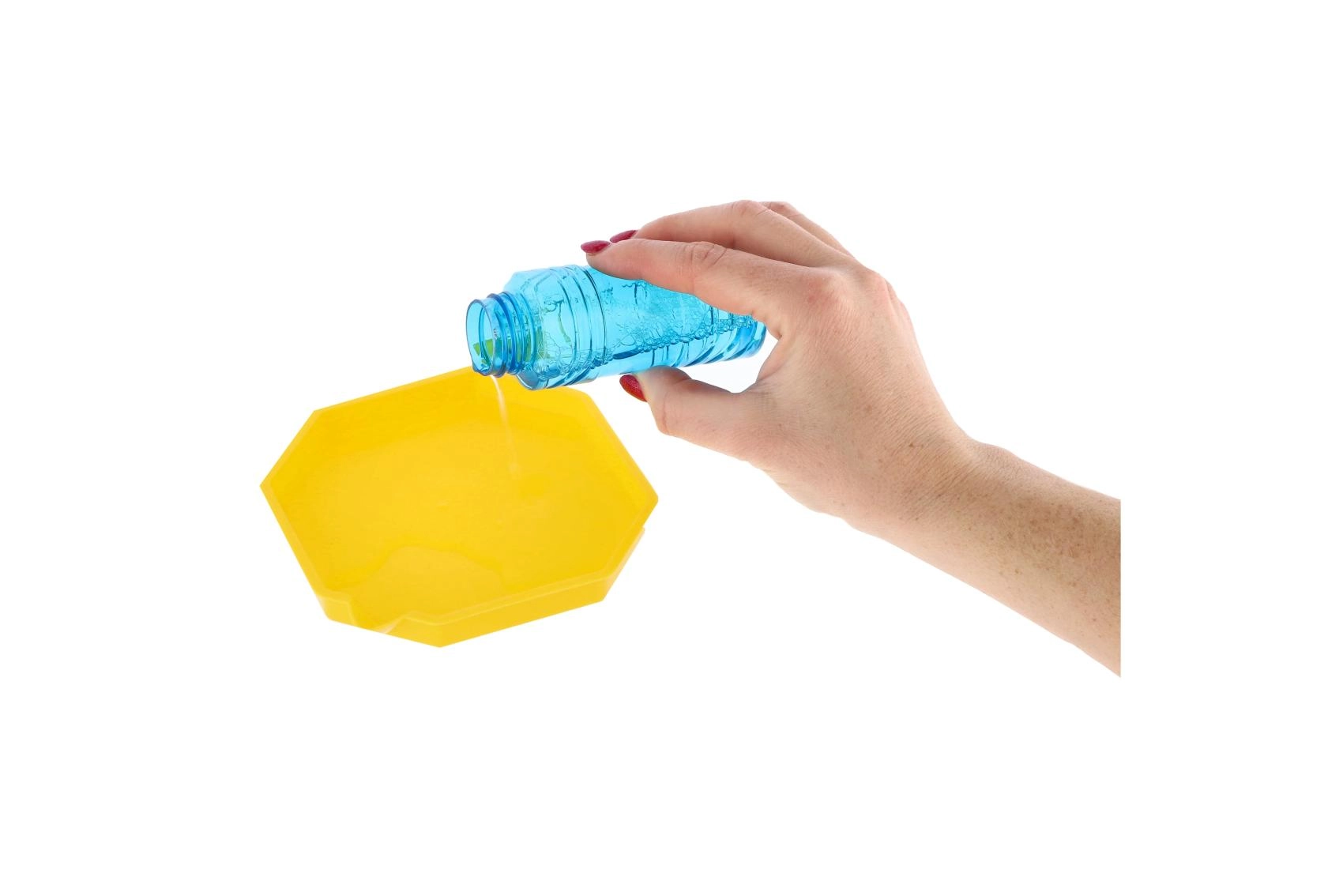 Praktisks trauks šķīdumam atvieglo ātru galviņas iemērkšanu un samazina nekārtību spēlējoties gan mājās, gan ārā.