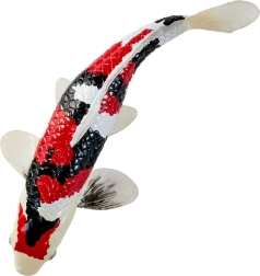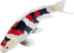Raksturīgā baltās, melnās un sarkanās krāsas kombinācija uzticami atdarina īstus Šova koi un izceļ zvīņu un spuru detaļas.
