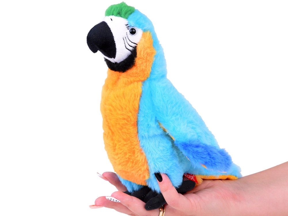 Ara papagailis ir viens no lielākajiem papagaiļu veidiem, tas nāk no Dienvid- un Vidusamerikas un bieži kalpo kā dekoratīvs elements vai mājdzīvnieks. Šī pūkainā papagaiļa versija ir radīta ar uzsvaru uz detaļām un izgatavota no maigiem, patīkamiem materiāliem ar dažādām tekstūrām un intensīvām krāsām, lai pēc iespējas uzticamāk atgādinātu īstu putnu. Drošs materiāla knābis un plastmasas acis palielina rotaļlietas drošību bērniem, un pateicoties savai konstrukcijai, papagailis var stāvēt patstāvīgi.