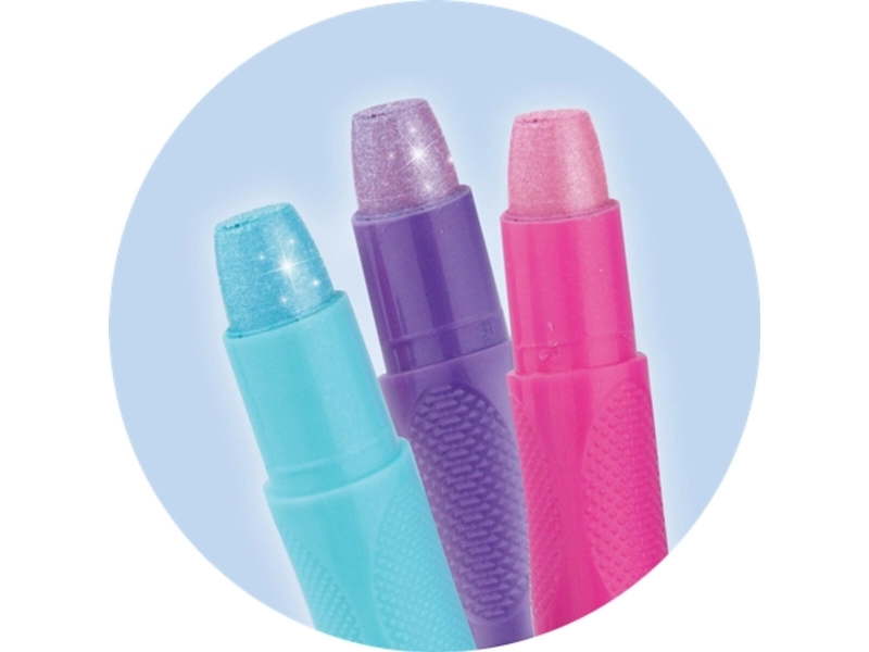 - 6 krāsaini spīdīgi flomāsteri nebeidzamām stilu kombinācijām