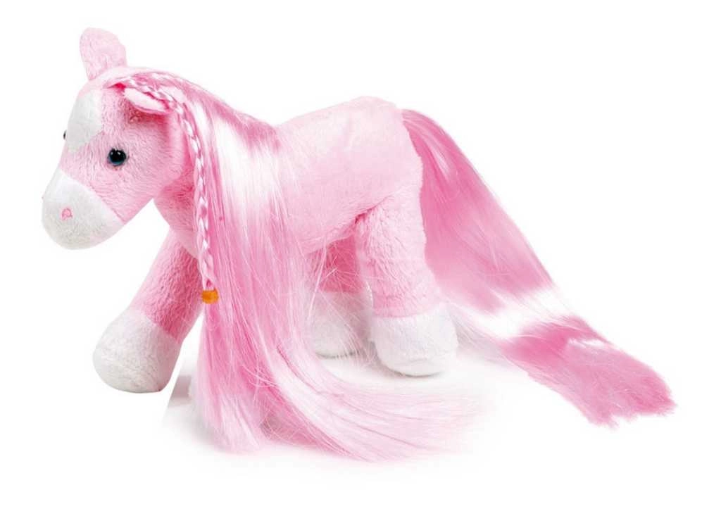 Šis rozā pūkainais ponijs elegantā somiņā ir lielisks pavadonis gan rotaļām, gan ceļošanai. Garā krēpe un aste aicina ķemmēt un pīt bizītes, savukārt mīkstais ķermenis nodrošina patīkamu mīļošanos. Ideāla dāvana bērniem, kuri mīl zirdziņus un burvīgus stāstus.