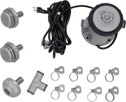 Komplektā ietilpst sūknis, patronfiltrs, 2 šļūtenes, 4 skavas un sietiņi – viss, kas nepieciešams sākumam.