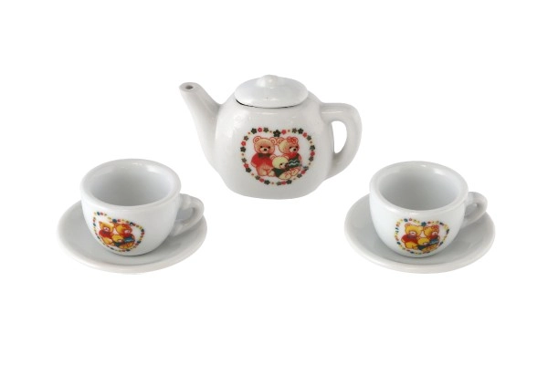 Komplektā ietilpst tējas kanniņa, tasītes un apakštasītes ar mīlīgiem lāčīšu un dzīvnieku motīviem, kas piesaista uzmanību jau no pirmā acu uzmetiena. Kompaktie izmēri 18 × 11,5 × 3,5 cm atvieglo uzglabāšanu un pārnēsāšanu.