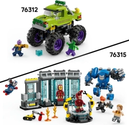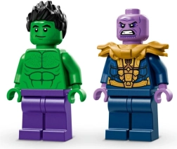 Uzbūvējiet varonīgu monstru kravas auto, kas tiks galā ar jebkuru misiju. Atvāžama kabīne slēpj vietu Halka minifigūriņai, milzīgie riteņi un atsperota piekare tiek galā ar bezceļu, bet uzraksts Hulk Smash! piešķir automobilim neatkārtojamu stilu. Neiztrūkst arī iespaidīgais Tanoss ar Bezgalības cimdu un Tesseraktu episkiem gaismas un tumsas spēku dueļiem.