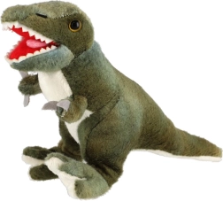 Šis pūkainais dinozaurs T‑Rex izceļas ar reālistisku formu, īsām ķepiņām, garu asti un atvērtu mutīti ar mīkstas auduma “zobiņiem”. Samtainā virsma ir saudzīga bērna ādai un aicina uz mīļošanos, savukārt rūpīgie šuvumi un forma veicina radošu spēli un iztēles attīstību.