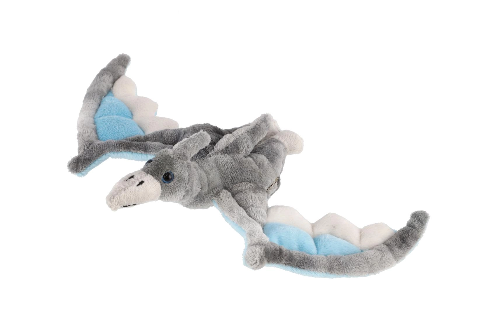 Mīļš un mīksts pūkains pterozauris pelēkā krāsā iepriecinās bērnus jau no dzimšanas. Ar izmēriem 40 × 28 cm tas ir ideāli piemērots samīļošanai un rotaļām, tam ir plati spārni iztēles lidojumiem un drošs, saudzīgs izpildījums pašiem mazākajiem.