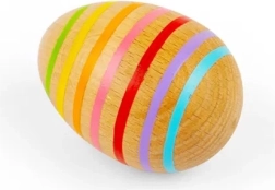 Šis svītrainais mūzikas olu grabulis no dabīgas koksnes ir ar gludu, bērna rokai ideāli piemērotu formu. Kratot tas rada patīkamu, maigu čaboņu, kas veicina ritma uztveri un attīsta akustiskās spējas.