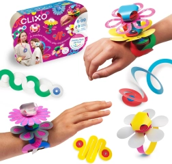 CLIXO Jewelry ir mirdzošs tematisks komplekts, iedvesmots no origami, kas ar spēcīgu magnētu palīdzību apvieno dažādas formas oriģinālās rotās un aksesuāros. Garie lentveida elementi un īpaši izstrādātie ziedu elementi ļauj veidot spirāles, piekariņus un izteiksmīgas matu rotas. Elementi ir ūdensizturīgi, vieglie un droši – bez BPA un ftalātiem.