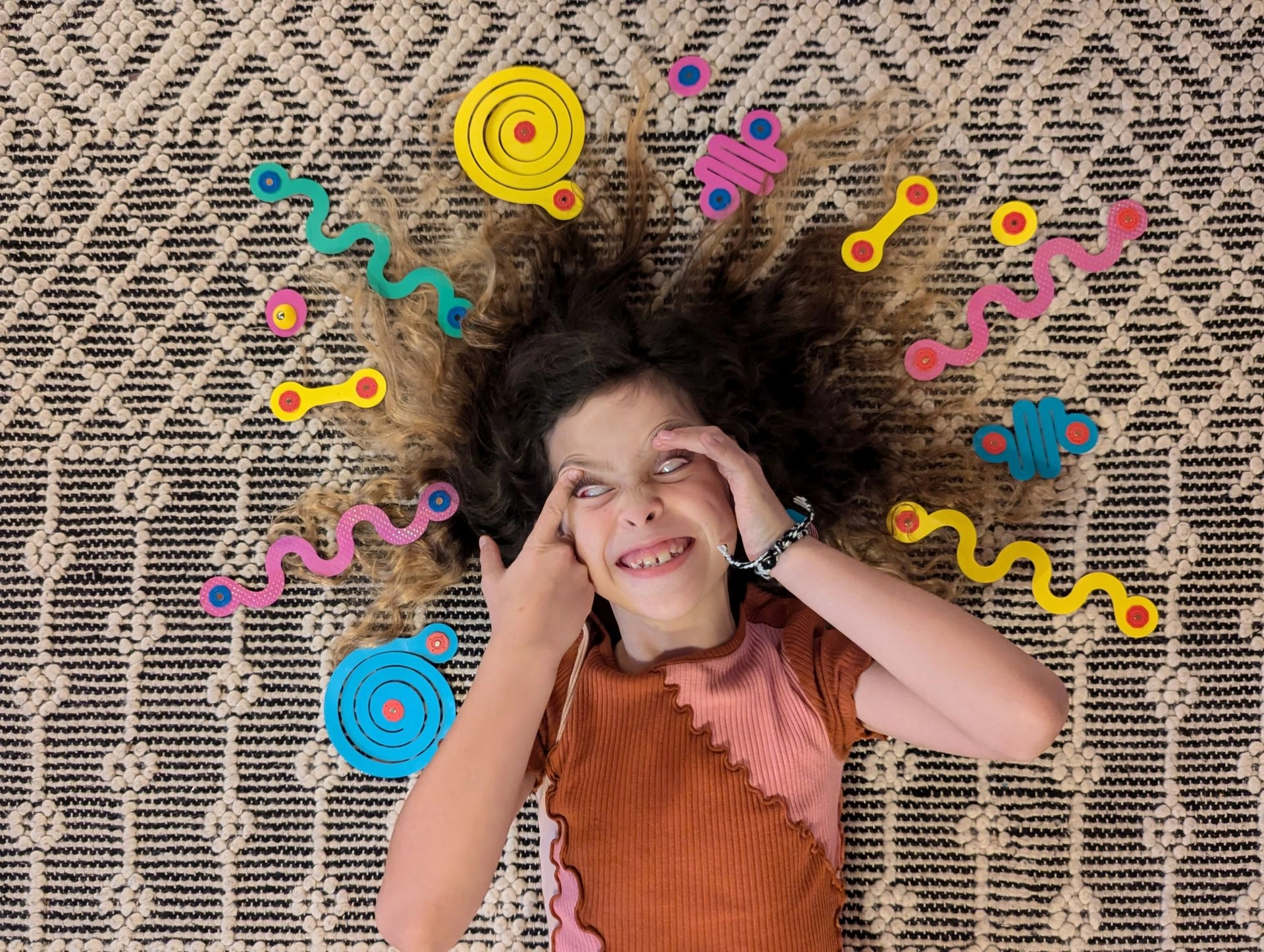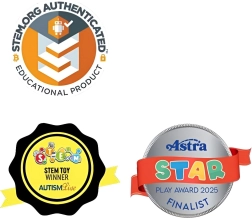 Unikālā rotējošā sistēma ar fiksāciju 24 pozīcijās piešķir darinājumiem stabilitāti un veicina telpisko uztveri, sīko motoriku un radošo domāšanu. Komplekts ir ideāls STEAM aktivitātēm mājās un skolā, kā arī kalpo kā relaksējošs antistresa līdzeklis bērniem un pieaugušajiem.