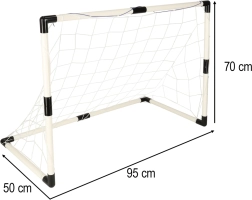 Izturīgas plastmasas caurules bez asām malām un stingrs tīkls nodrošina bērnu drošību, savukārt divas putu bumbas ir ideāli piemērotas tehnikas apguvei un saudzīgai spēlei telpās. Komplekts veicina motorikas attīstību, koordināciju un veselīgu prieku par kustību.