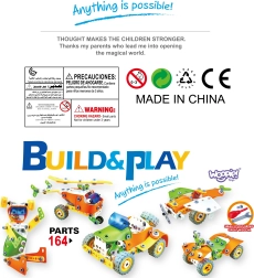 Attīstiet bērnu iztēli un prasmes ar WOOPIE STEM 5-in-1 konstruktoru ar 164 elastīgām detaļām. Bērni var salikt auto, kvadraciklu, helikopteru, lidmašīnu un robotu, bet, pateicoties skrūvēm un riteņiem, izveidot kustīgas daļas. Izturīgi materiāli, bērniem droši, un pārskatāma instrukcija garantē stundām ilgu radošu izklaidi un mācīšanos spēlējoties.