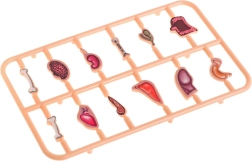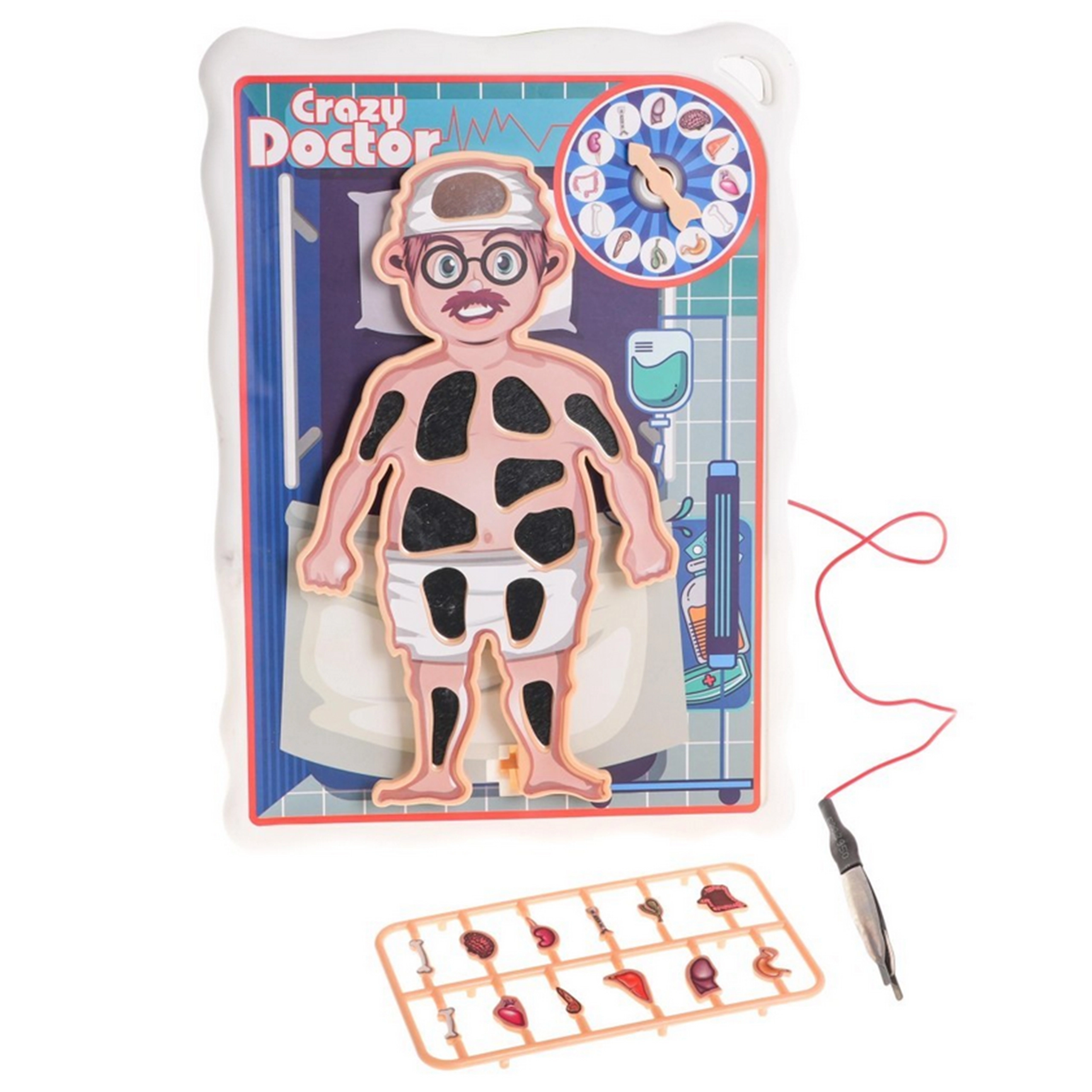 Komplektā ietilpst spēles dēlis ar pacientu, rullīte, pincete un 12 orgāni. Aizmugurē ir ērta glabātuve visām sastāvdaļām.