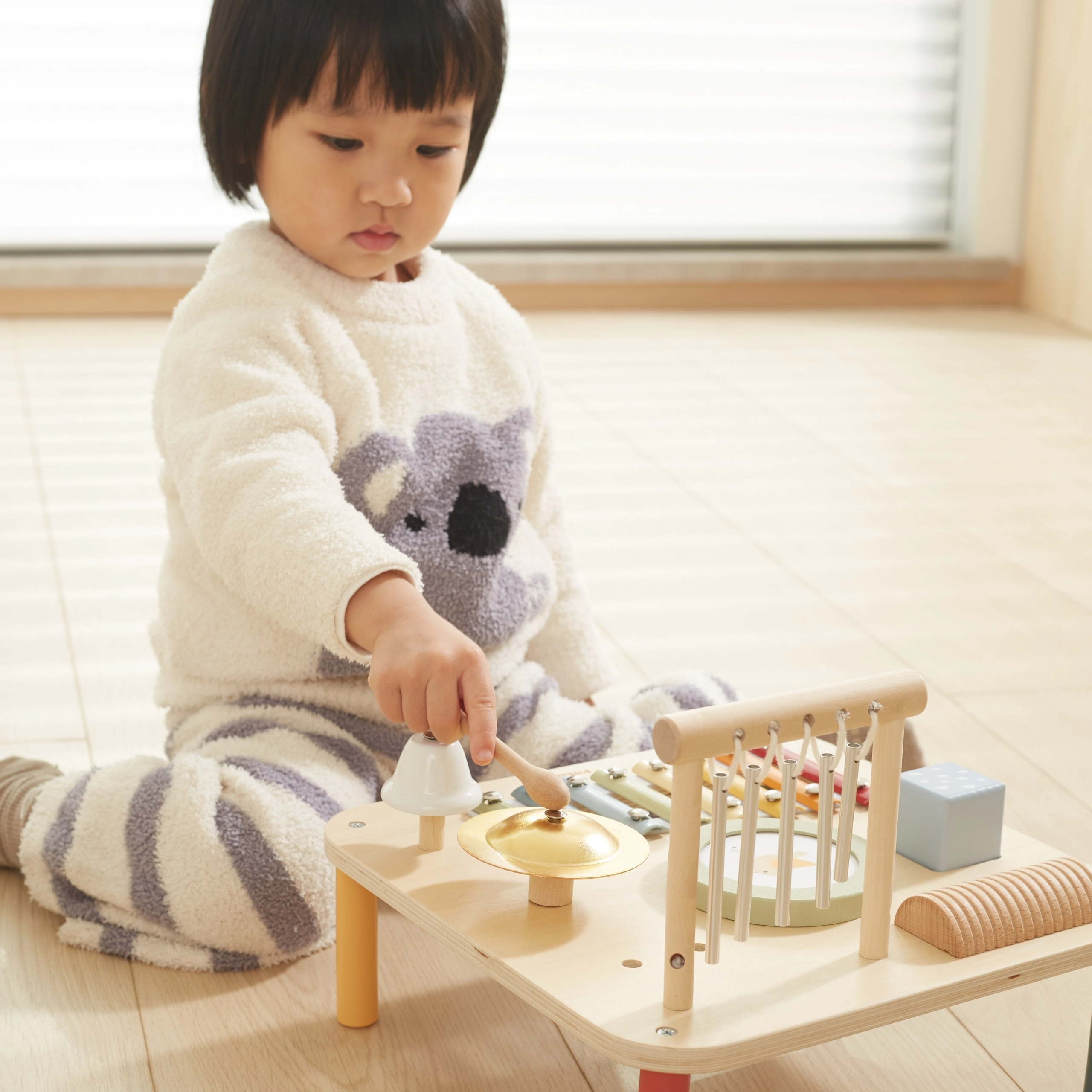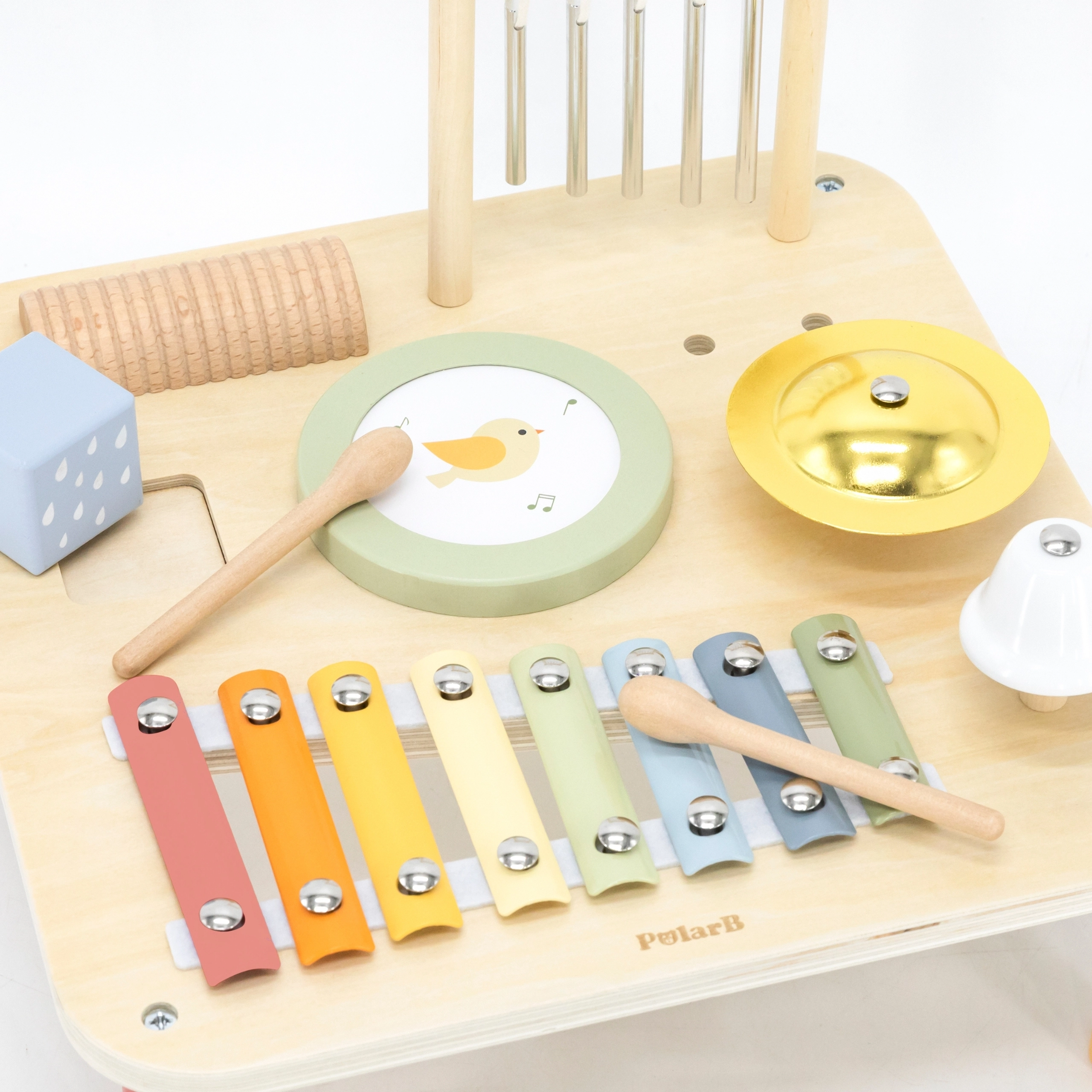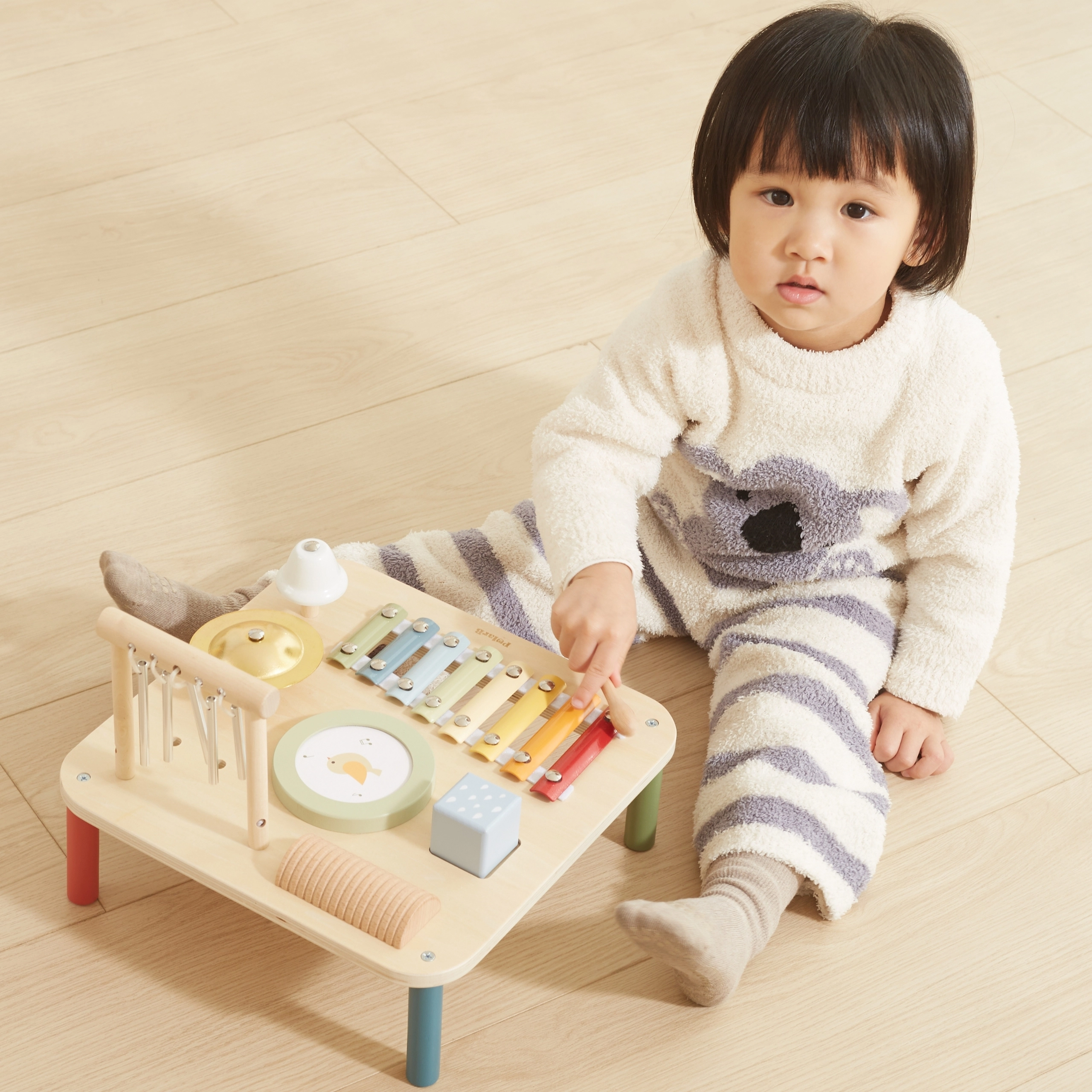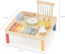 Katra galdiņa sastāvdaļa slēpj citu aizraujošu instrumentu, kas rosina eksperimentēt un veidot pašiem savas melodijas. Šī daudzfunkcionālā rotaļlieta ir izstrādāta, lai veicinātu bērnu sensorisko un radošo attīstību jau no 18 mēnešu vecuma.