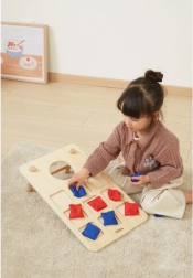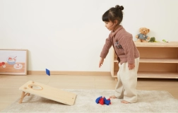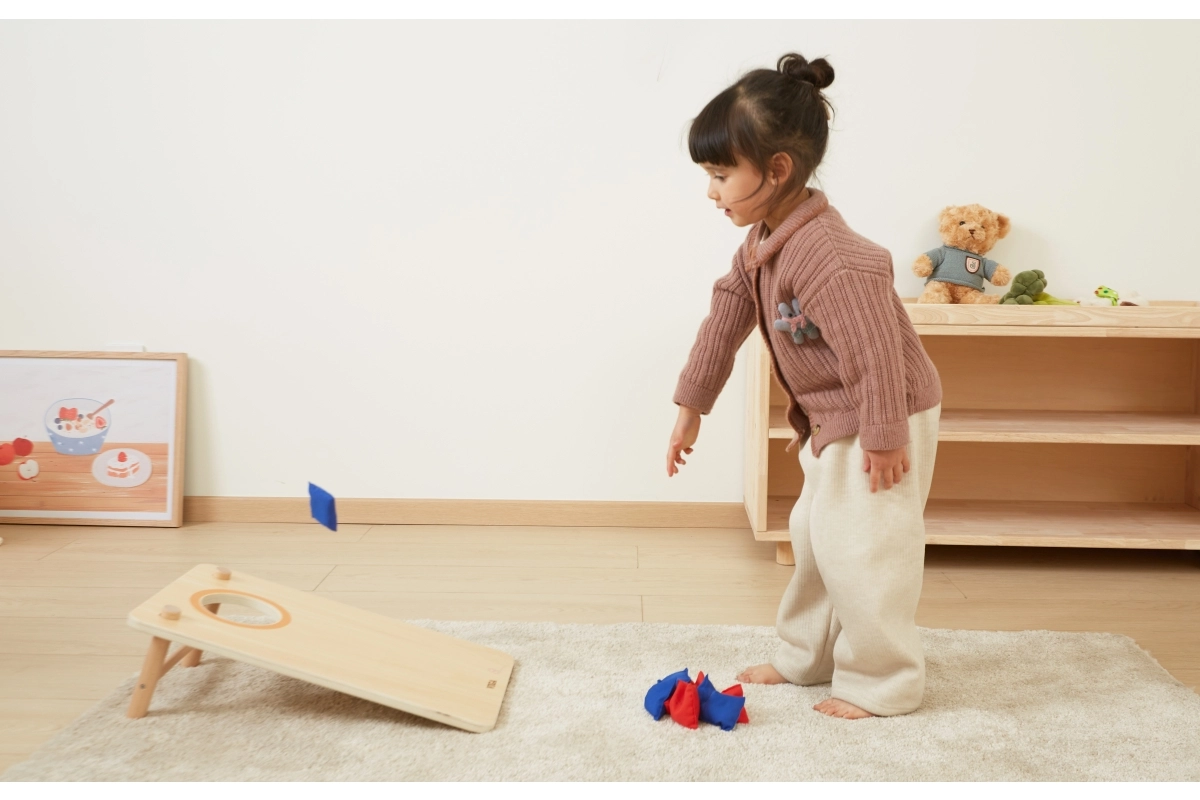 Viena dēļa — dubulta deva jautrības. Precīzi metieni apaļajā atverē un stratēģija krustiņos–nullītēs noturēs gan bērnus, gan pieaugušos spēlē ilgi.