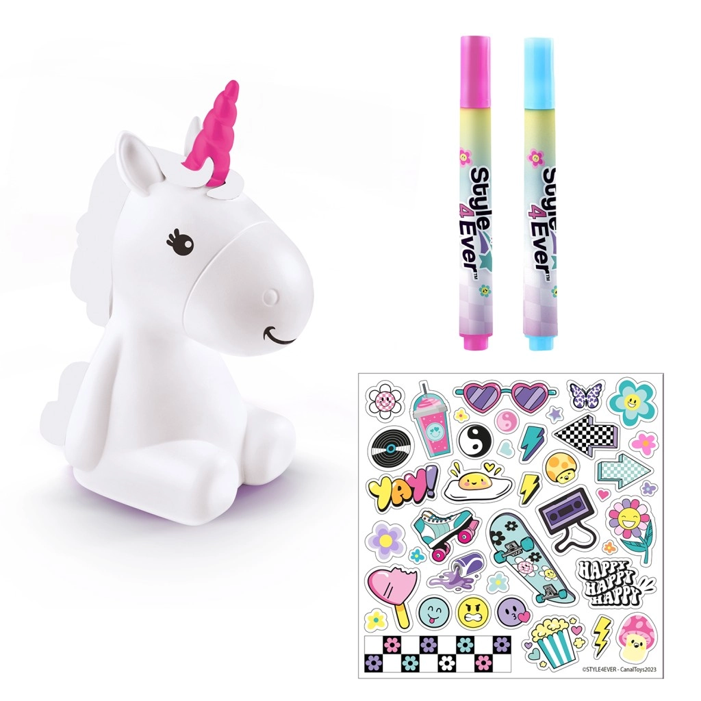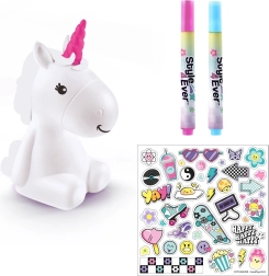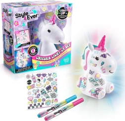 Ienesiet bērnu istabā burvību ar radošo komplektu Style4Ever Spīdošs vienradzis, ko bērni var izdekorēt paši. Pēc pabeigšanas vienradzis mirdz 8 krāsās un rada mājīgu atmosfēru. Iepakojumā ir spīdoša figūriņa, 4 flomāsteri, uzlīmes un vienkārša instrukcija, turklāt baterijas ir iekļautas. Piemērots no 6 gadu vecuma.