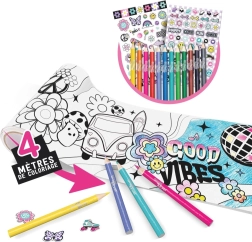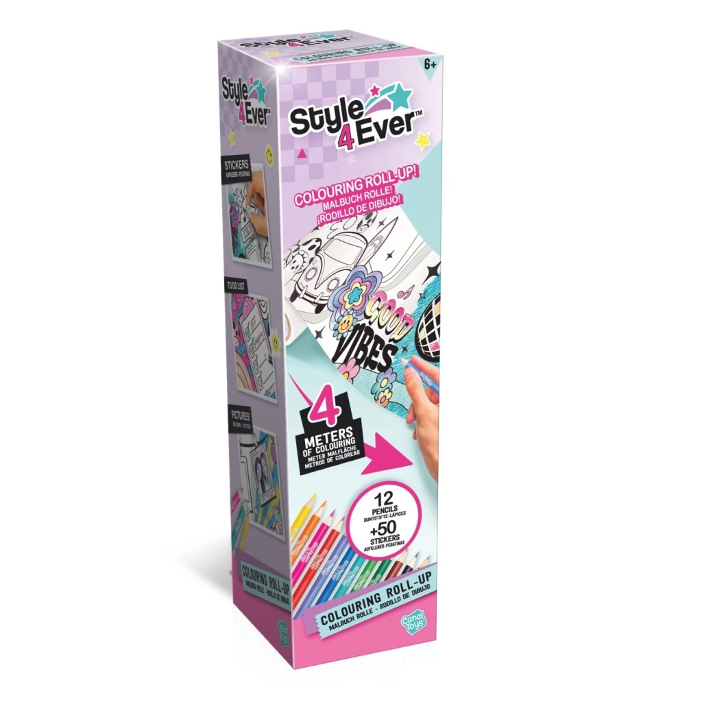 Atklājiet nebeidzamu izklaidi ar komplektu Style4Ever krāsojamā rullī – 4 metrus garš krāsojams rullis, 12 zīmuļi košās krāsās un 50+ uzlīmes oriģinālai noformēšanai. Ideāli bērniem no 6 gadu vecuma, attīsta sīko motoriku, radošumu un koncentrēšanos – lieliska izklaide daudzām stundām.